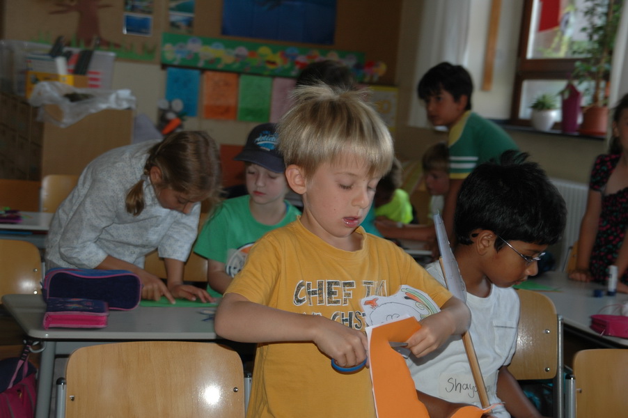Im Juli besuchten uns im Rahmen der Kooperation Kindergarten - Grundschule mehrfach unsre "Freunde" aus verschiedenen Kindergärten Rheinstettens. An drei Terminen erlebten die kommenden Erstklässler des Schuljahres 2014-2015 spannende, ereignisreiche Stunden an unsrer Schule. Gemeinsam mit den Schülern verschiedener Klassenstufen lernten wir das Buch "FREUNDE" von Helme Heine näher kennen. In Anlehnung an das Bilderbuch wurde gebastelt, erzählt, gerätselt, gespielt und gemalt. Es hat allen sehr viel Freude bereitet und wir freuen uns auf September - denn dann können wir die "neuen" Pestalozzi-Schüler in unsrer Mitte willkommen heißen!