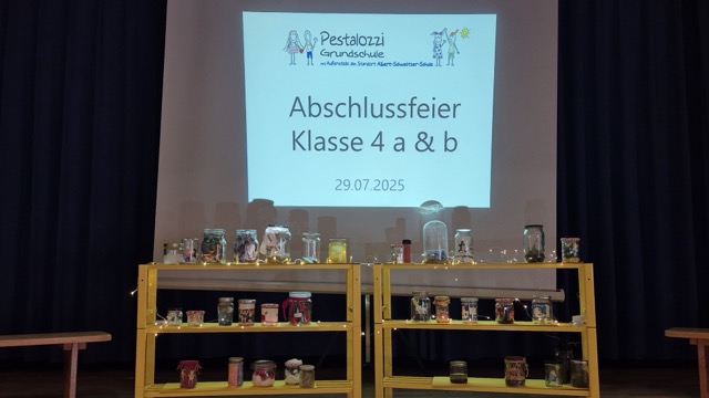 Ein ganz besonderer Tag: Am Dienstag, den 29. Juli verabschiedeten sich die vierten Klassen der Pestalozzi-Grundschule feierlich von ihrer Grundschulzeit. In der voll besetzten Bernhardushalle versammelten sich die Familien der Kinder, um gemeinsam diesen wichtigen Meilenstein zu feiern.