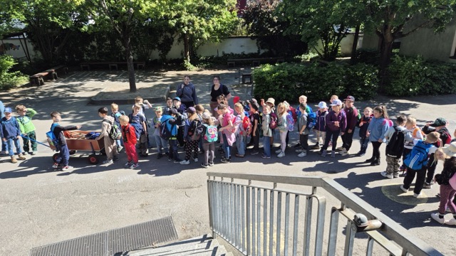 Für die Erstklässler der Klassen 1a und 1b war es am 16.05.2025 so weit: der erste Arbeitseinsatz auf dem Acker stand an.
