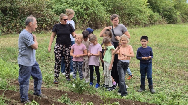 Zwei Monate nach der Pflanzaktion zogen die Erstklässler wieder auf den Acker, um zu sehen, was in der Zwischenzeit gewachsen war.