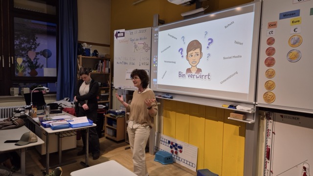 Im März fanden in den ersten und dritten Klassen Informationselternabende zum Thema „Medienkonsum bei Kindern“ statt. Das Hauptaugenmerk lag auf der Sensibilisierung der Eltern bezüglich der möglichen Gefahren im Internet und auch auf der empfohlenen technischen Ausstattung eines Grundschulkindes. Ziel von Anja Spörl war es, einen Austausch anzuregen und das Für und Wider verschiedener Endgeräte und Programme bzw. Apps aufzuzeigen. Mittels einer Mentimeterumfrage konnten die Eltern in Echtzeit die Auswertung in der jeweiligen Klassenstufe ihrer Kinder zu verschiedenen thematischen Schwerpunkten sehen und zum Gesprächsanlass nutzen. Vielen Dank an Anja Spörl für den informativen Abend.