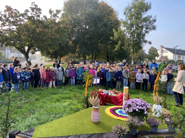 Am Freitag, 10.10.2025 feierten die Klassen der Pestalozzi-Grundschule mit Außenstelle Albert-Schweitzer-Schule, einen stimmungsvollen Erntedankgottesdienst auf der Meriske, dem Grünstreifen in der Nähe der Minigolfanlage Rheinstetten-Mörsch.