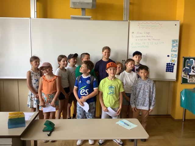 Zurück an der Schule wartete als süße Belohnung ein leckeres Eis auf die Kinder. Doch damit war der Tag noch nicht zu Ende: Bei heiß-sommerlichem Wetter sorgte eine fröhliche Wasserschlacht mit selbst gebastelten Wasserbomben für großen Spaß und eine willkommene Abkühlung.