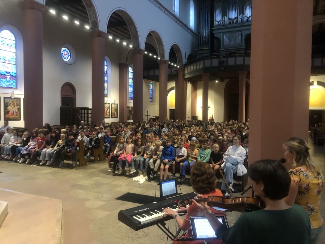 Unter dem Motto „Glück“ feierten heute die Pestalozzi- und Albert-Schweitzer-Grundschule in St. Ulrich ihren Gottesdienst zum Schuljahresabschluss. Vorbereitet und gestaltet von der Religionsfachschaft, hörten kleine und große Gottesdienstbesuchende die Geschichte von Zachäus und seinem „Lächelmantel“. Einige mutige Schülerinnen und Schüler trauten sich sogar, vor der vollen Kirche etwas vorzulesen oder zu zeigen. Musikalisch gestaltet von unserer Schulleitung Doris Wesserling und ihrem Team, sangen die Kinder fröhlich das „Kindermutmachlied“, als sie sich glücklich wieder auf den Rückweg in die Schulen machten.