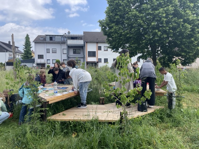 Neben der Bespflanzung eines neu entstandenen Hochbeetes haben wir gemeinsam mit Indra Schelble und Studentinnen der PH Karlsruhe Cyanotypien hergestellt.