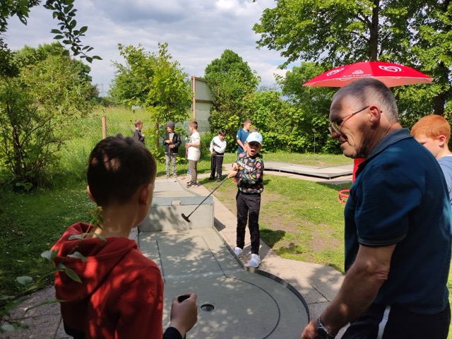 „Wann startet die Minigolf-AG?“, fragten vor den Osterferien schon einige Kinder voller Ungeduld. Am vergangenen Donnerstag war es dann endlich soweit. Knapp 40 Kinder trafen sich zum Schnuppertraining auf der Minigolf-Anlage in Mörsch. Ein herzliches Dankeschön an die Verantwortlichen Ursula Oberle, Reinhold Wiegelmann, Beatriz Grüßinger, der Deutschen Meisterin, sowie dem ganzen Verein Minigolf Wölfle, die den Platz und ihre Zeit kostenfrei den Kindern zur Verfügung stellen.