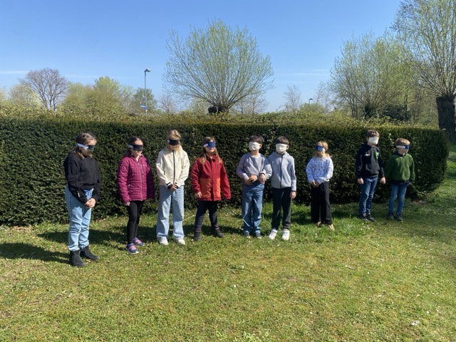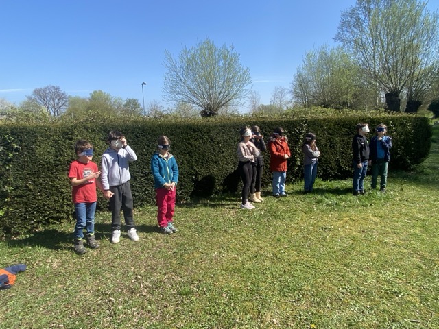 Beim Streuobstwiesenprojekt Anfang April ging es um die dort lebenden Vögel. Nachdem die Kinder einige Vogelstimmen vorgestellt bekommen haben, versuchten sie diese aus dem ganzen Gezwitscher herauszuhören. Danach erhielten sie Informationen zur Paarungszeit und dem Nestbau. Unterschiedliche Nester wurden gezeigt. Anschließend durften sie spielerisch erfahren, wie es ist, aus vielen verschiedenen Vogelstimmen diejenige ihres zukünftigen Partners herauszuhören. Im Anschluss bauten "die Paare" zusammen ein Nest. Dabei durften nur Zangen als Schnabelersatz verwendet werden. Zum Schluss wurde jedes Nest aufgesucht und Bau sowie Lage besprochen.