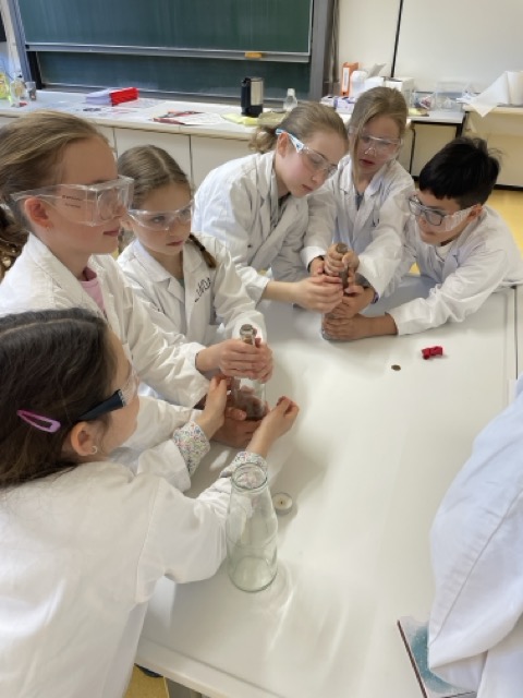 Zum Beispiel haben wir Brausetabletten aufgelöst und mit dem entstehenden Gas einen Luftballon aufgeblasen. Außerdem durften wir ein kleines Feuer machen, wofür wir dann einen „Feuerlöscher“ hergestellt haben. Auch haben wir erlebt, wie unterschiedlich sich kalte und warme Luft verhalten kann. Dabei zitterte sogar eine Münze!