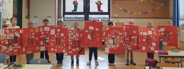 Anlässlich des Stadtjubiläums haben sich die Klassen beider Standorte der Pestalozzi-Grundschule auf unterschiedliche Weise mit ihrer Stadt beschäftigt: So schrieben sie z. B. Geschichten zu ihrem Lieblingsbaum, erforschten das Leben der Störche in Rheinstetten, besuchten das Heimatmuseum, lernten Leben und die Werke von Emil Wachter näher kennen, beurteilten die Spielplätze unter verschiedenen Kriterien, erstellten Collagen zu den Buchstaben Rheinstettens, gestalteten künstlerisch Griesbäuche, Maurer und Geißböcke.