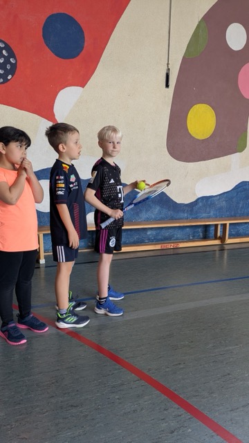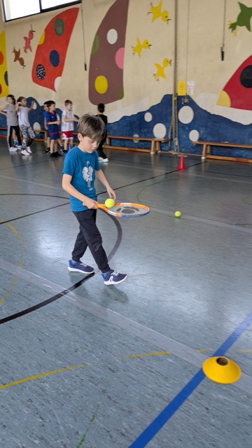 Am 03.04.25 erlebten die Erstklässler der Pestalozzi Grundschule eine Sportstunde der besonderen Art. Zur Abwechslung stand ein Sportlehrer vor ihnen - und im Gepäck noch Tennisschläger und Bälle!