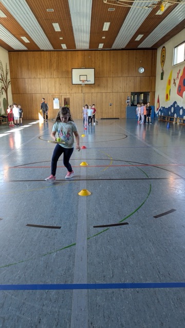 Mit  abwechslungsreichen Spielen lernten die Kinder die verschiedenen Schlagtechniken kennen und durften zum Abschluss auch selbst ein paar erste Schläge austesten. Mit so viel Spaß verflog die Sportstunde im Nu!