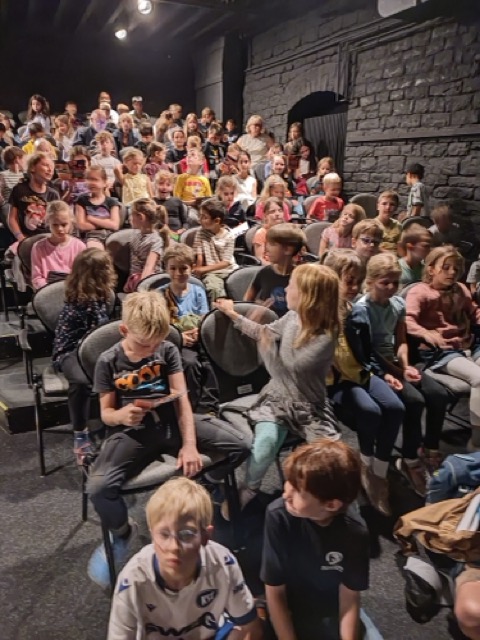 Abgerundet wurde die Aufführung durch ein reduziertes, aber sehr passendes Bühnenbild. Die passende Musik und die punktsichere Interpretation der eingespielten Geräusche vom Band rundeten den unterhaltsamen Vormittag ab. Die 19 Kinder begeisterten in ihren unterschiedlichen Rollen mit viel Verve und Spaß auf der Bühne und eroberten Das Publikum im Sandkorn-Theater, das bis auf den letzten Platz ausverkauft war.