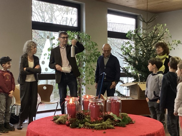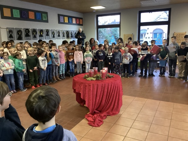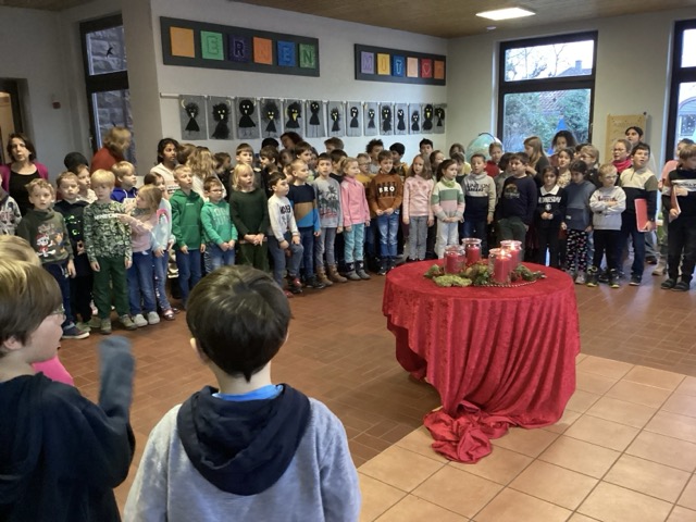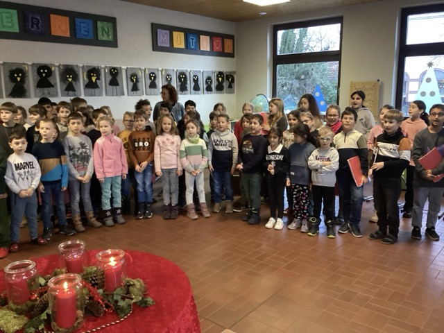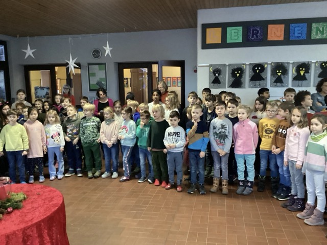 im Rahmen eines gemeinsamen Adventssingens in der Aula, represäntativ für alle Erstklässler