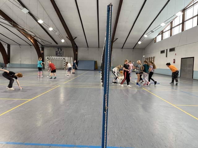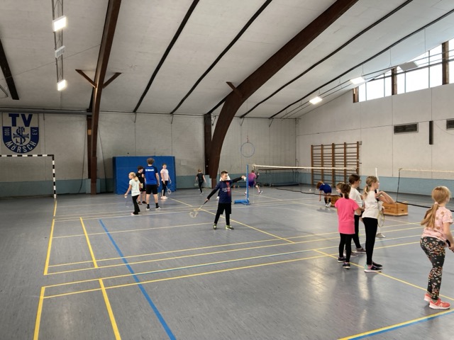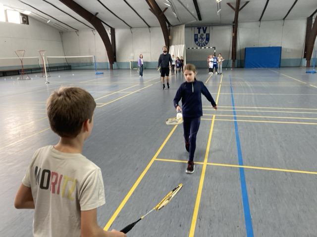 Diesen Oktober wurden alle vier vierten Klassen der Pestalozzi Grundschule mit Standort Albert-Schweitzer-Grundschule zu einer Schnupperdoppelstunde Badminton eingeladen. Jessica und Marcel, zwei Mitglieder des TV Mörschs, erwarteten uns voller Elan und begrüßten uns mit einer kurzen Einführung und einer Vorführrunde Badminton. Spätestens da waren die Kinder Feuer und Flamme und konnten es kaum erwarten, die Schläger selbst in die Hand zu nehmen. Nach einer Runde Aufwärmen ging es dann auch direkt an unterschiedlichen Stationen los. Die Kinder konnten ihre Fähigkeiten am Schläger testen, indem sie die Federbälle durch Reifen oder in Kästen schossen, mit einem Luftballon das Schlagen übten oder direkt mit einem Partner oder einer Partnerin im Badmintonfeld starteten. Die Zeit verging wie im Flug und am Ende kam die Frage auf, wann wir das nächste Mal zum Badminton gehen würden.