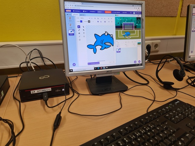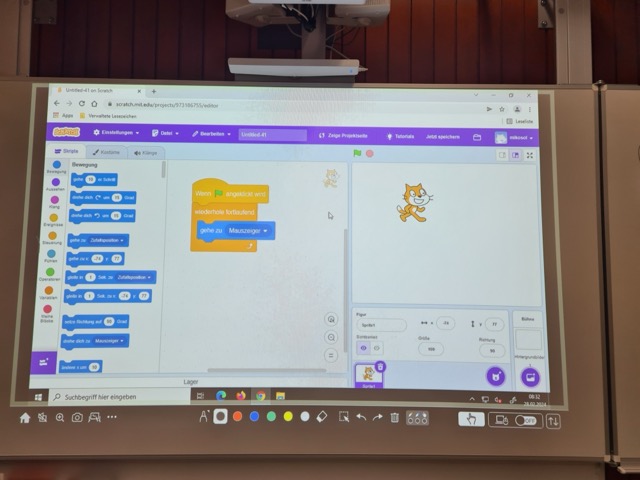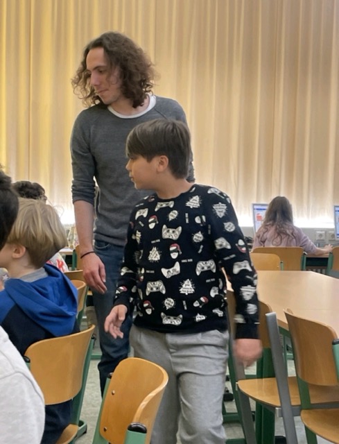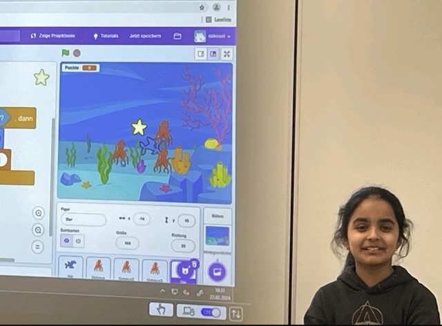 Die Viertklässler der ASS hatten die Möglichkeit, mit zwei Studenten ein Spiel mit Hilfe von "Scratch" zu programmieren.