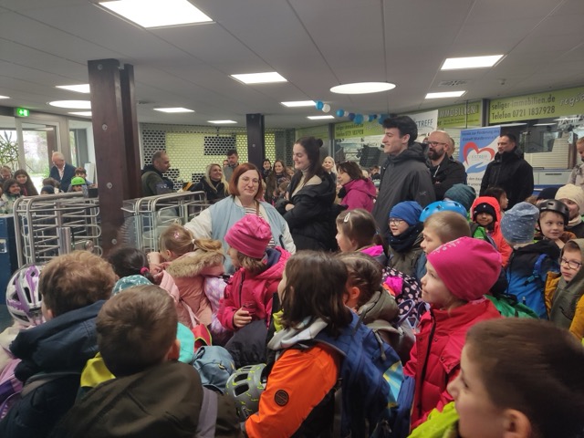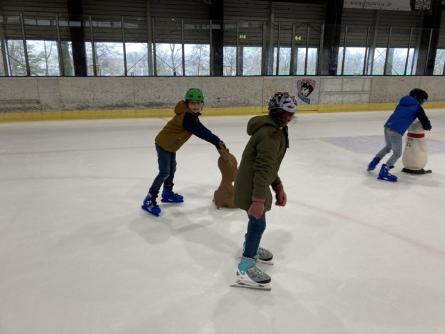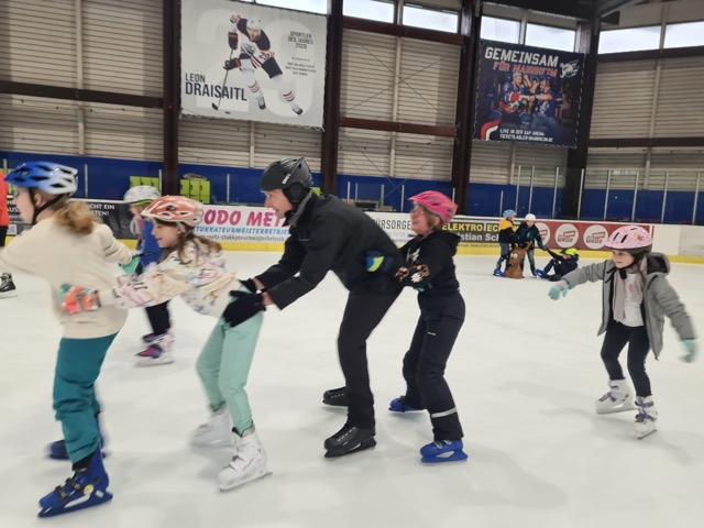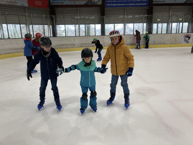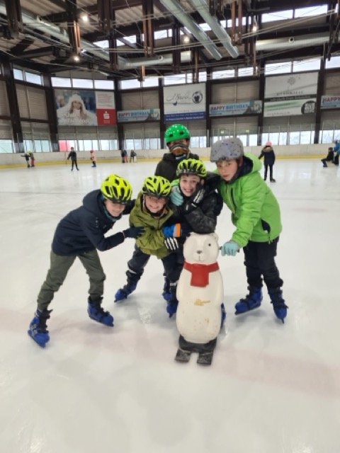 Am 13.3.2024 war es mal wieder soweit: Die Kinder der Pestalozzi-Grundschule mit Außenstelle am Standort Albert-Schweitzer-Schule konnten dank der Finanzierungshilfe unseres Fördervereins ihren Wintersporttag im Eistreff Waldbronn beim Schlittschuhlaufen verbringen. Auch in diesem Schuljahr gab es mutige Anfänger, die zügig lernten, rasante Läufer, die kraftvoll ihre Runden zogen und vor allem ein schönes und jahrgangsgemischtes Miteinander, bei welchem Kinder, wie Erwachsene, sich im ständigen Rollentausch zwischen Ratgebenden, Helfenden, Lernenden befanden und letztlich alle profitierten. Ein besonderes Dankeschön an Herrn Auracher, der als ambitionierter Eishockeyspieler auch in diesem Jahr wieder seine „Laufschule“ anbot und sich intensiv für den Erhalt der Eishalle einsetzt, sowie ein herzliches Dankeschön an alle Eltern, Studierende und FSJler, die uns begleiteten, dieses Jahr sogar zahlreich mit uns auf dem Eis waren und mit helfenden Händen fleißig beim An- und Ausziehen der Schuhe, Handschuhe, Mützen, Schals und Jacken anpackten, beim Sortieren alle Kleidungsstücke zupackten und für alle Kinder ein offenes Ohr hatten. DANKE auch an Dr. Hellenschmidt vom Städtischen Klinikum und Herrn Deutsch, die für Notfälle während der ganzen Zeit bereitstanden. Erfreulicherweise mussten sie nicht eingreifen.