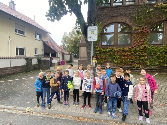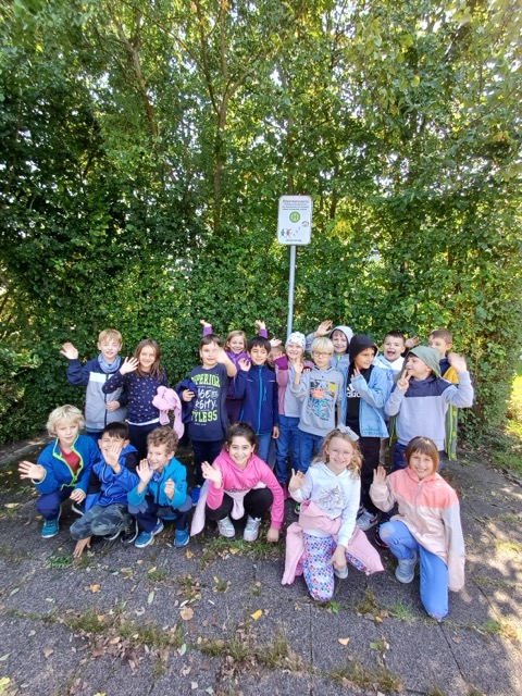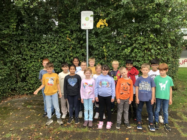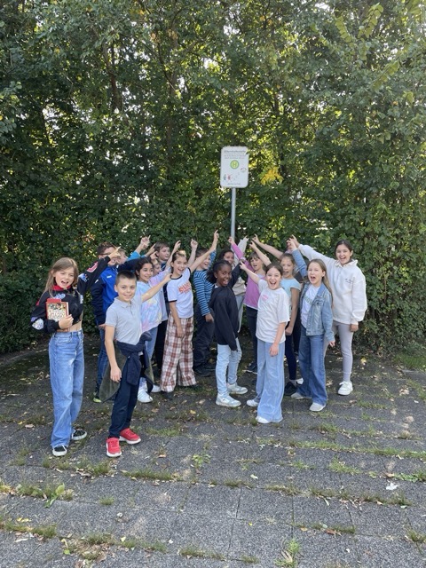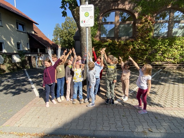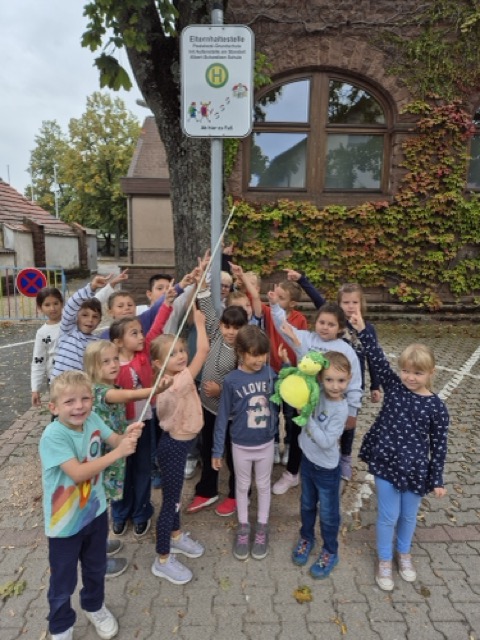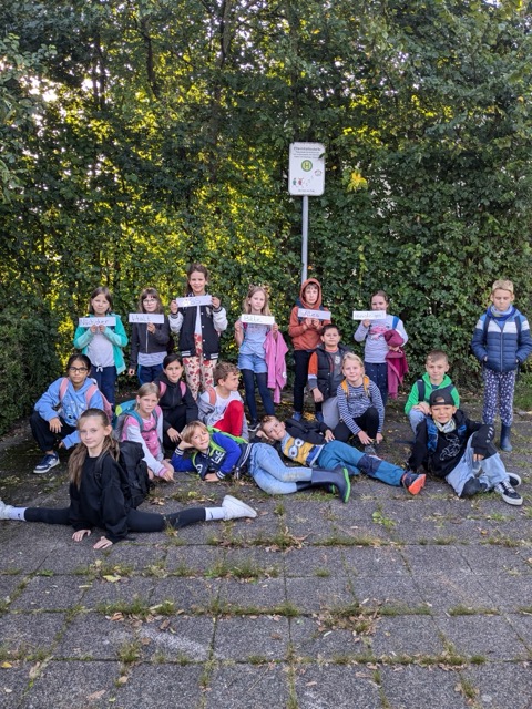 Die Kinder haben mit ihren Lehrkräften die Elternhaltestelle aufgesucht und wissen Bescheid, wo sie herausgelassen werden sollen.