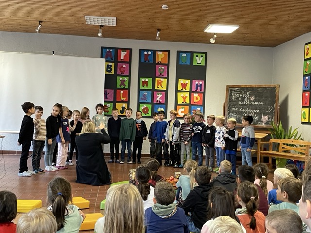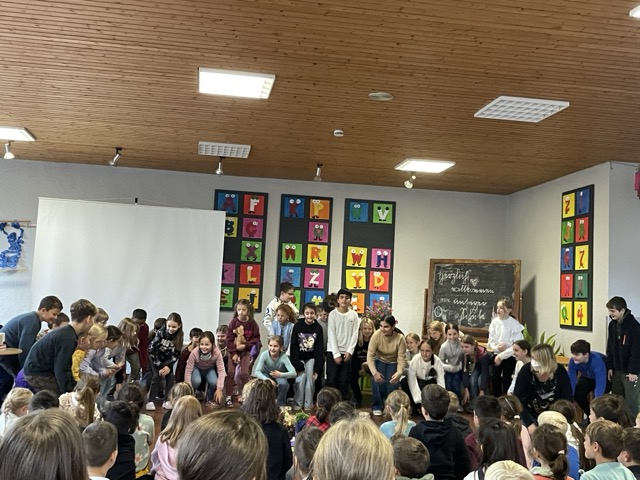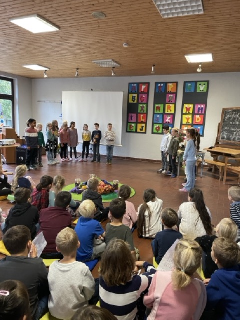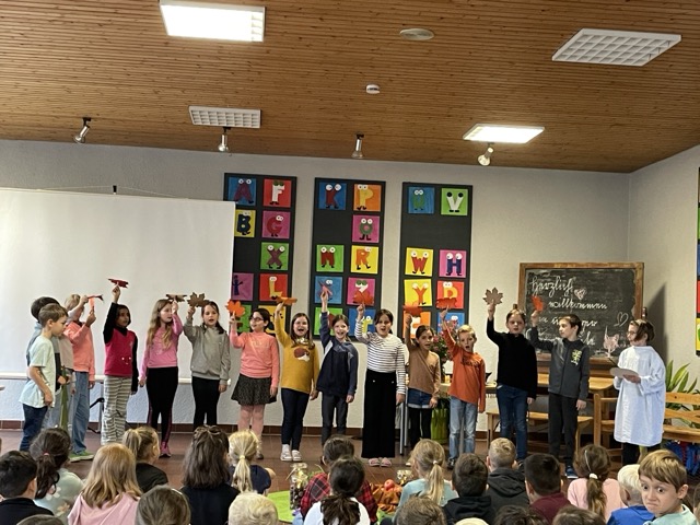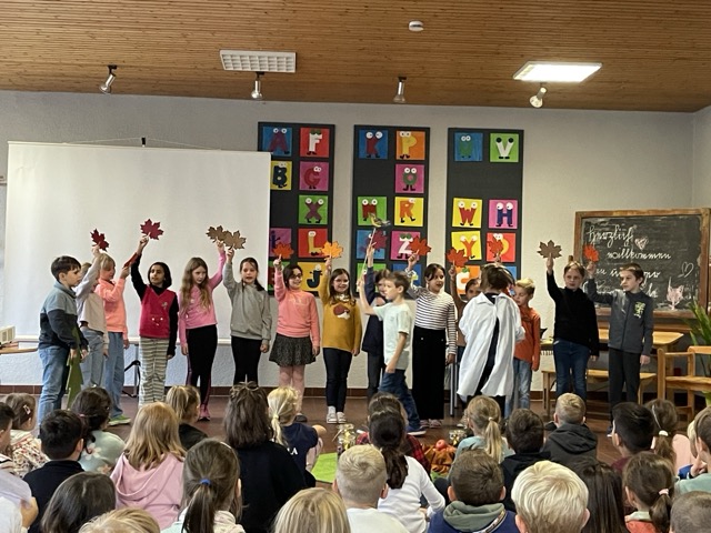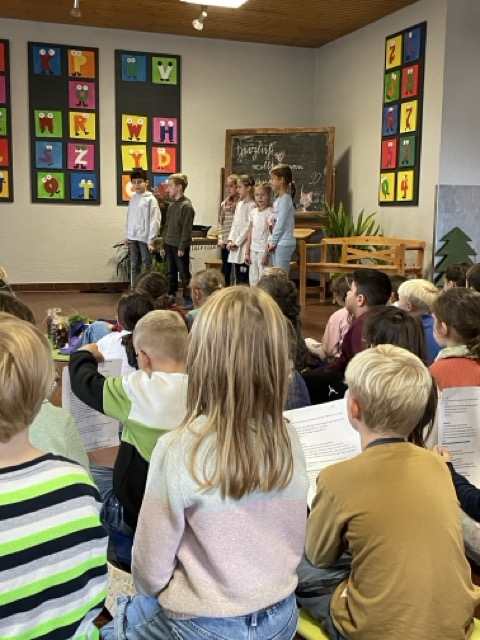 Die Klasse 3a trug einen leckeren Überblick über die verschiedenen Kartoffelgerichte vor. Über die bunten Farben des Herbstes erzählte uns die Klasse 3b mit dem Gedicht „Der Herbst steht auf der Leiter“. Danach brachten die Viertklässler mit dem „Kartoffel- Boogie“ alle in Schwung.