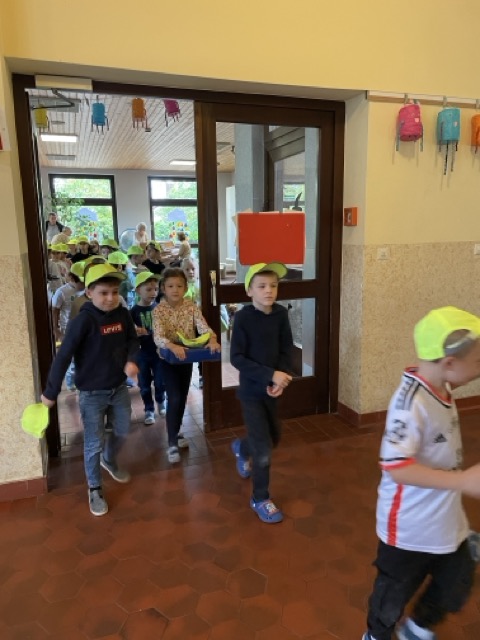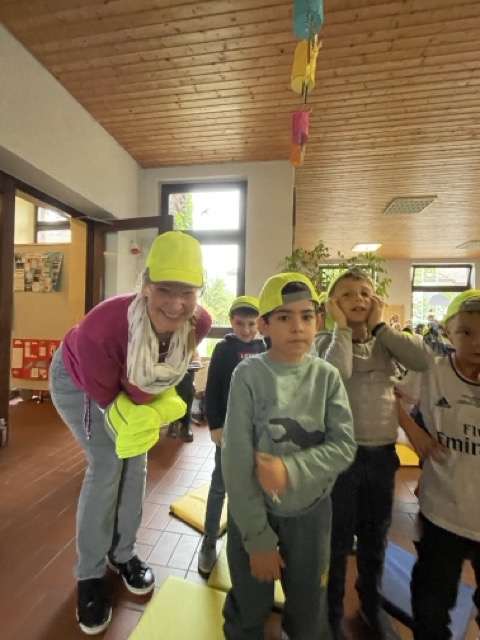 Abschließend übergaben die Vertreter der Bürgerstiftung den Erstklässlern eine reflektierende Mütze, um bestens für den Schulweg an dunkleren und regnerischen Tage gerüstet zu sein. Vielen Dank für dieses tolle Geschenk!