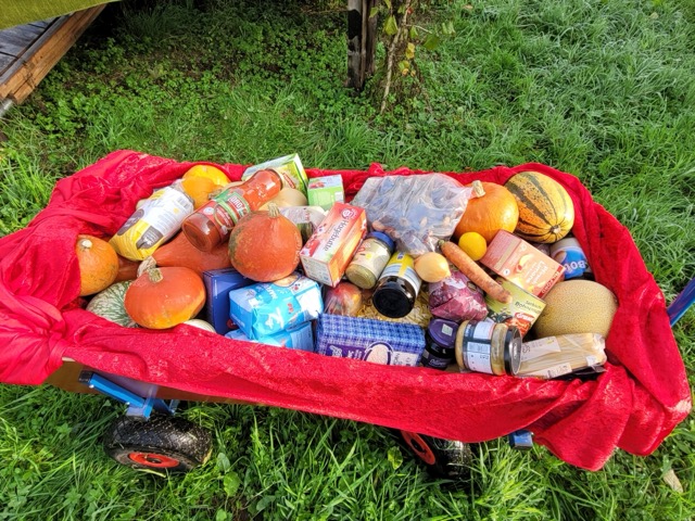Ein besonderer Moment war die Segnung der zahlreichen Spenden für das Gabenlädchen. Diese wurden in der vergangenen Woche von den Familien der Schulkinder großzügig gespendet.
