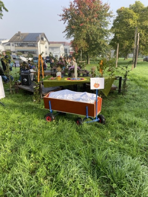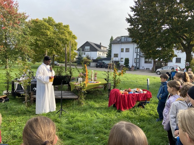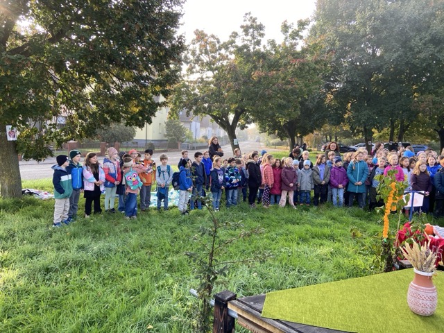 Am Freitag, 10.10.2025 feierten die Klassen der Pestalozzi-Grundschule mit Außenstelle Albert-Schweitzer-Schule, einen stimmungsvollen Erntedankgottesdienst auf der Meriske, dem Grünstreifen in der Nähe der Minigolfanlage Rheinstetten-Mörsch.
