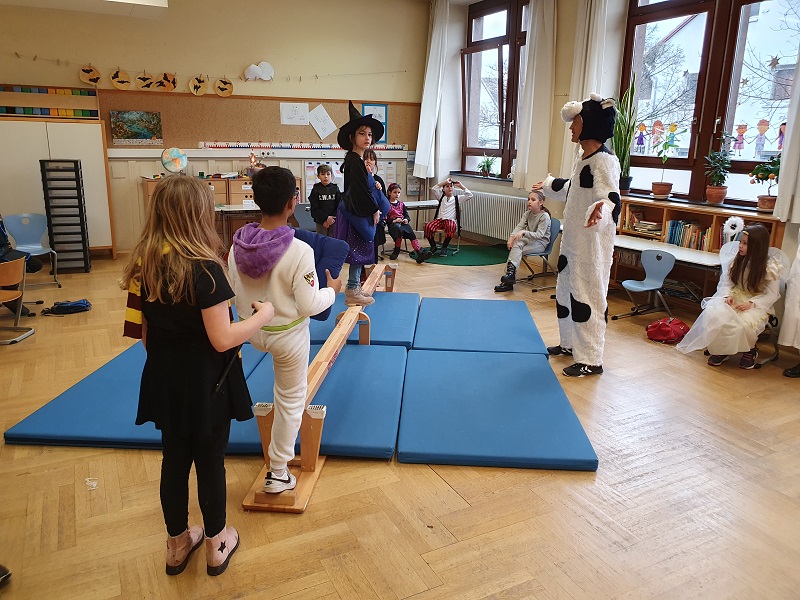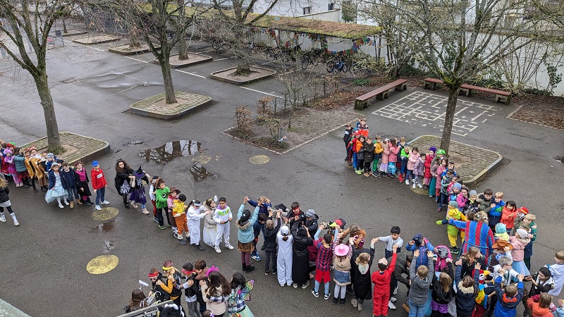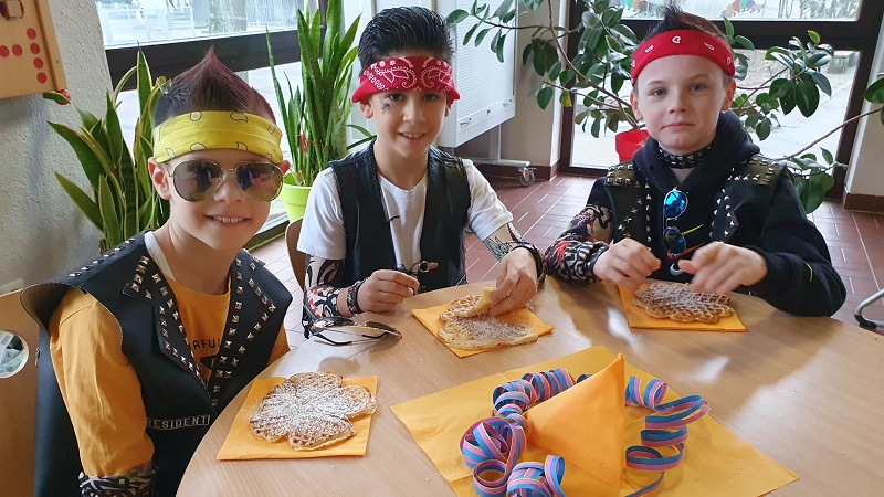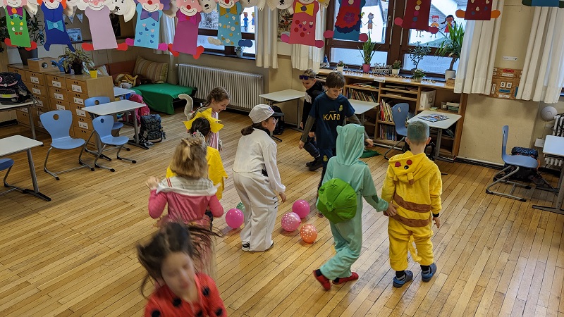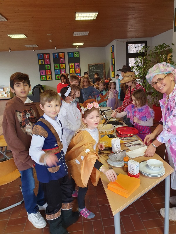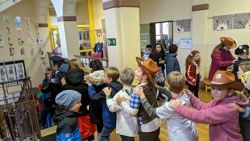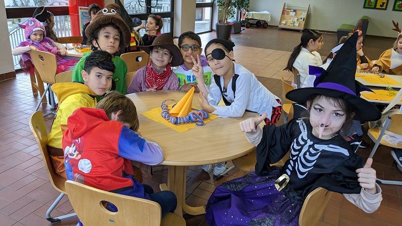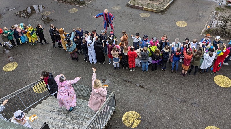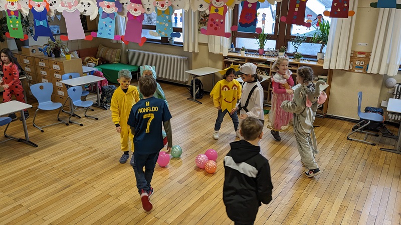 Kinder wie Lehrkräfte kamen bunt verkleidet, um gemeinsam Fastnacht zu feiern. Besonders war in diesem Jahr, dass die Kinder frei durchs Schulhaus streifen und an verschiedenen Angeboten teilnehmen konnten. Dazu gehörten unter anderem die Kinderdisco mit Stopptanz, verschiedenste Spielstationen sowie das Basteln von Knalltüten. Die Klasse 3a bereitete außerdem fleißig Waffeln für alle zu.