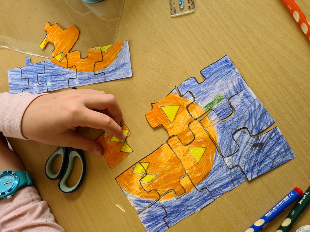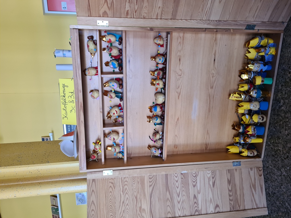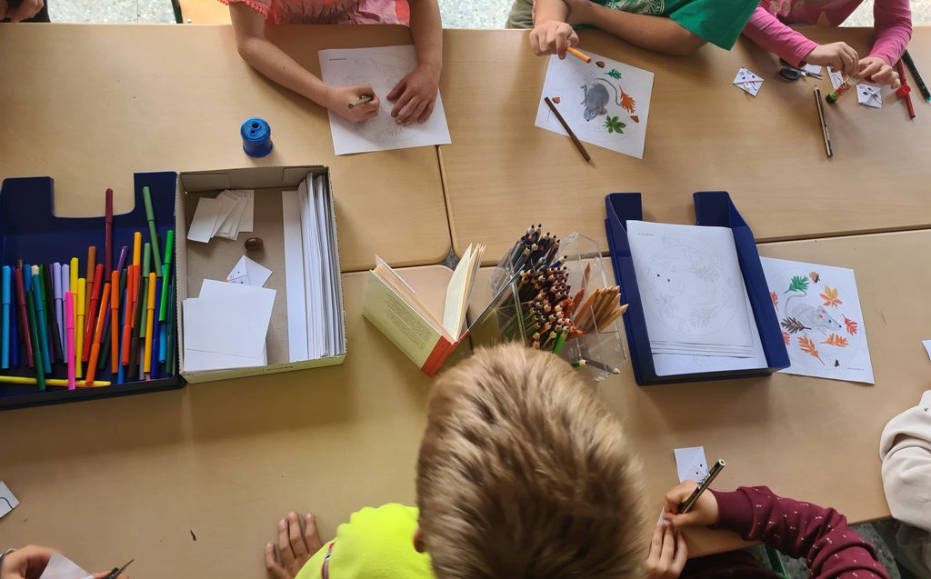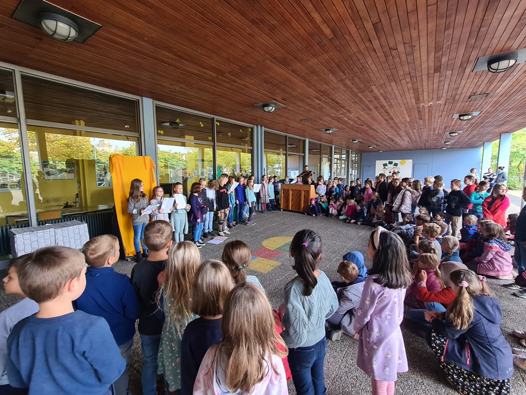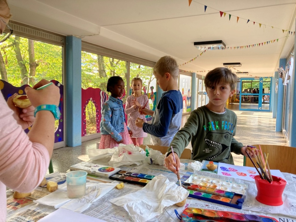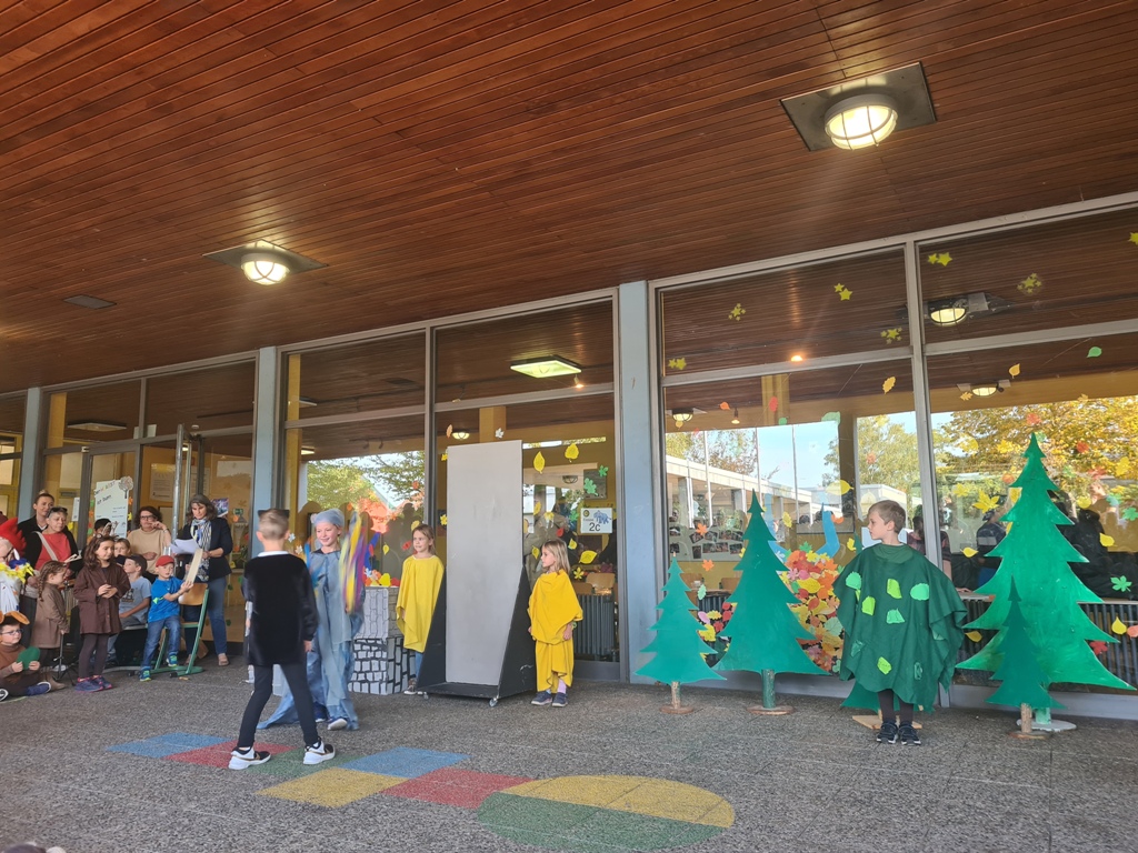 In den zweiten Klassen wurde das Bilderbuch „Frederick“ unter die Lupe genommen, ein Gartenbeet mit bunten Steinen gestaltet und ein Blättertanz mit bunten Tüchern gelernt. Die Drittklässler erarbeiteten alles rund um die Kartoffel und kochten in der Schulküche köstliche Kartoffelgerichte. Geschnitzte Kürbisgesichter, selbst genähte Eulen, Windlichter und kreative „Herbst-Elfchen“ sah man in der Herbstwerkstatt der vierten Klassen.