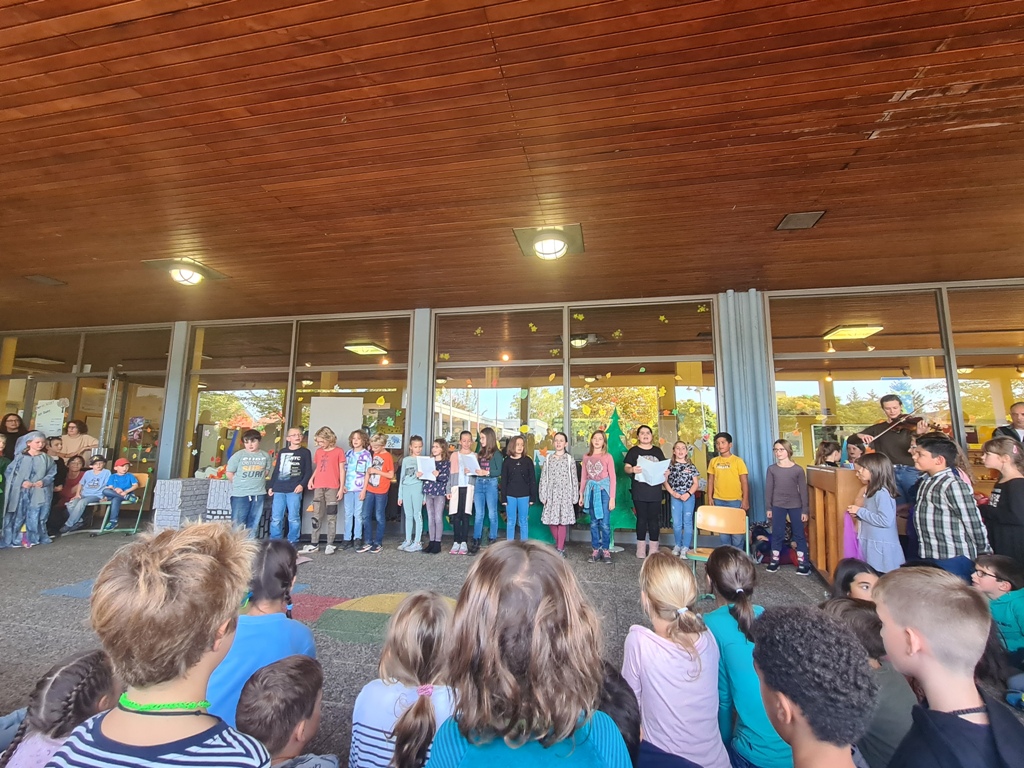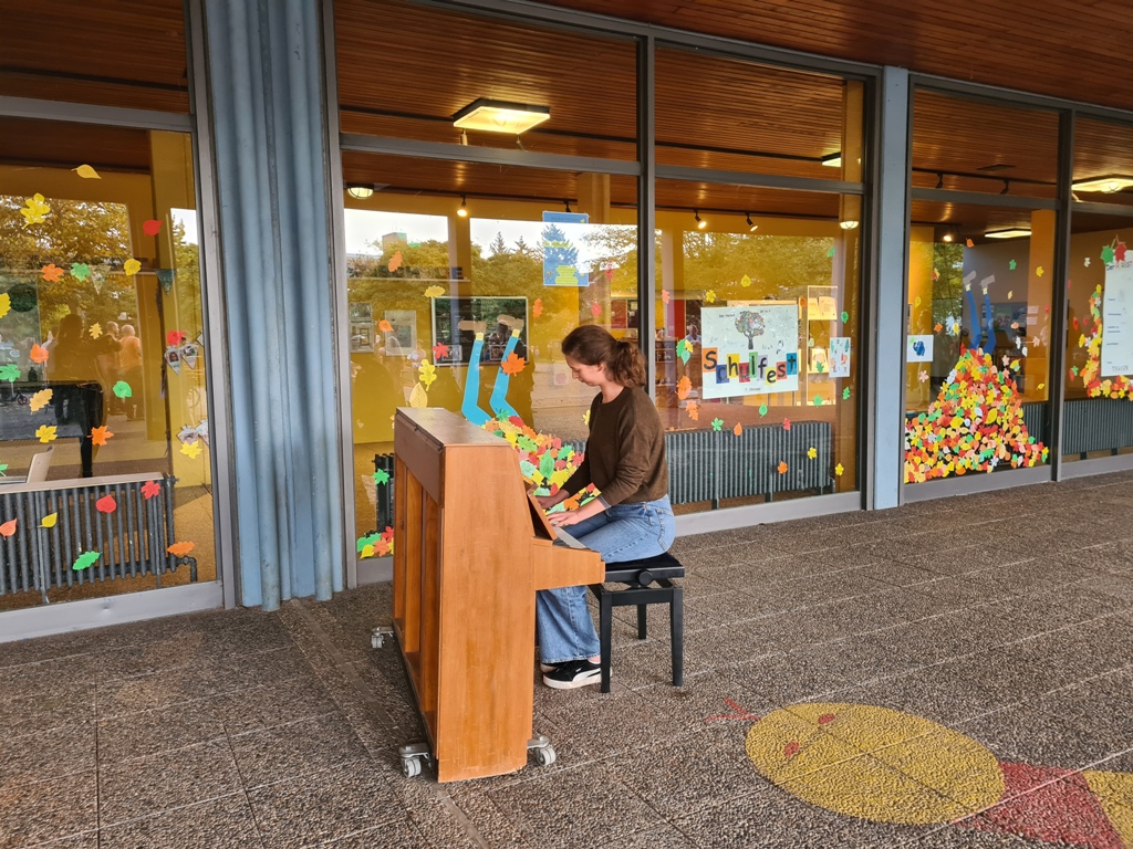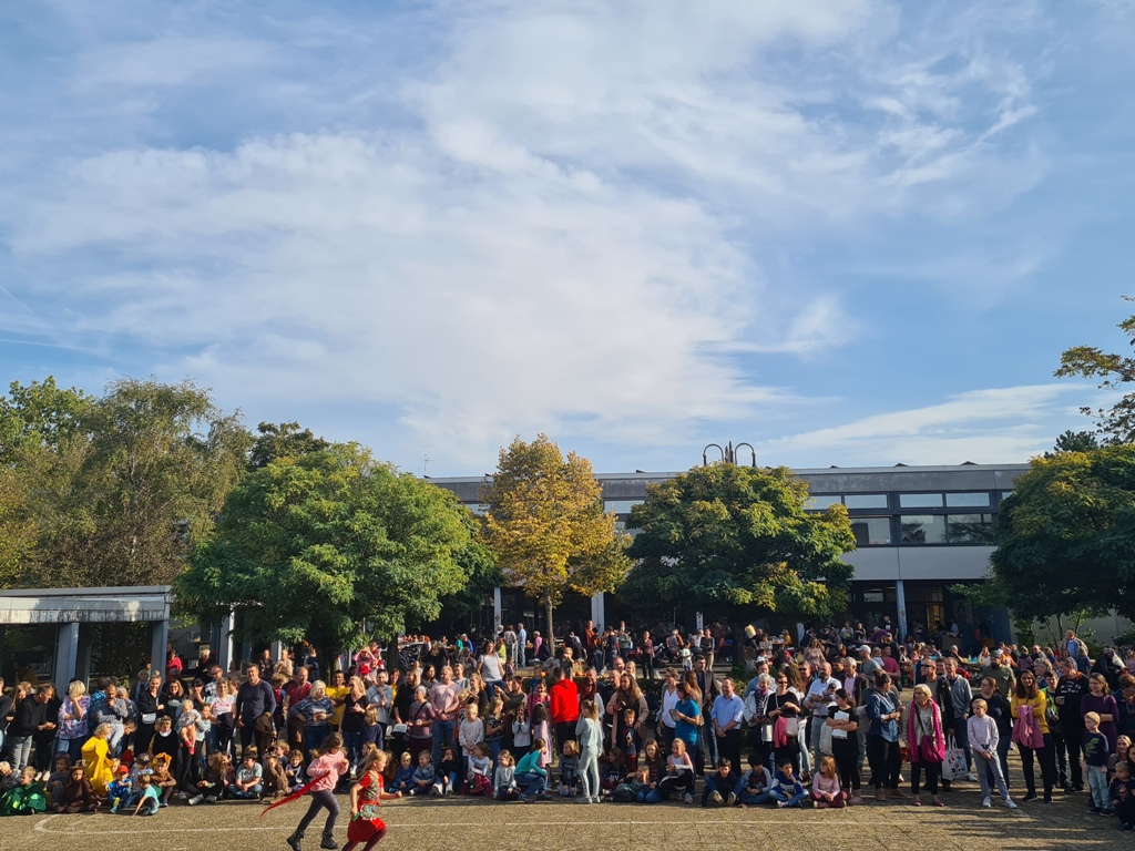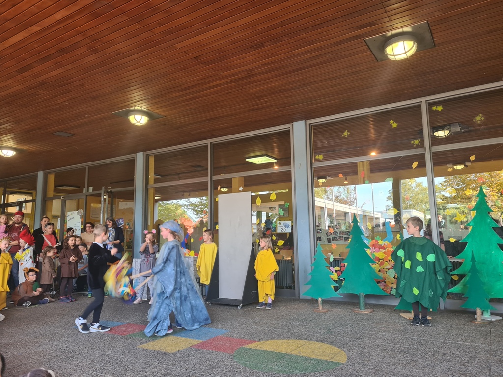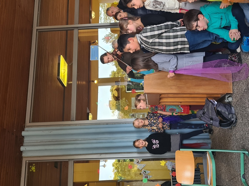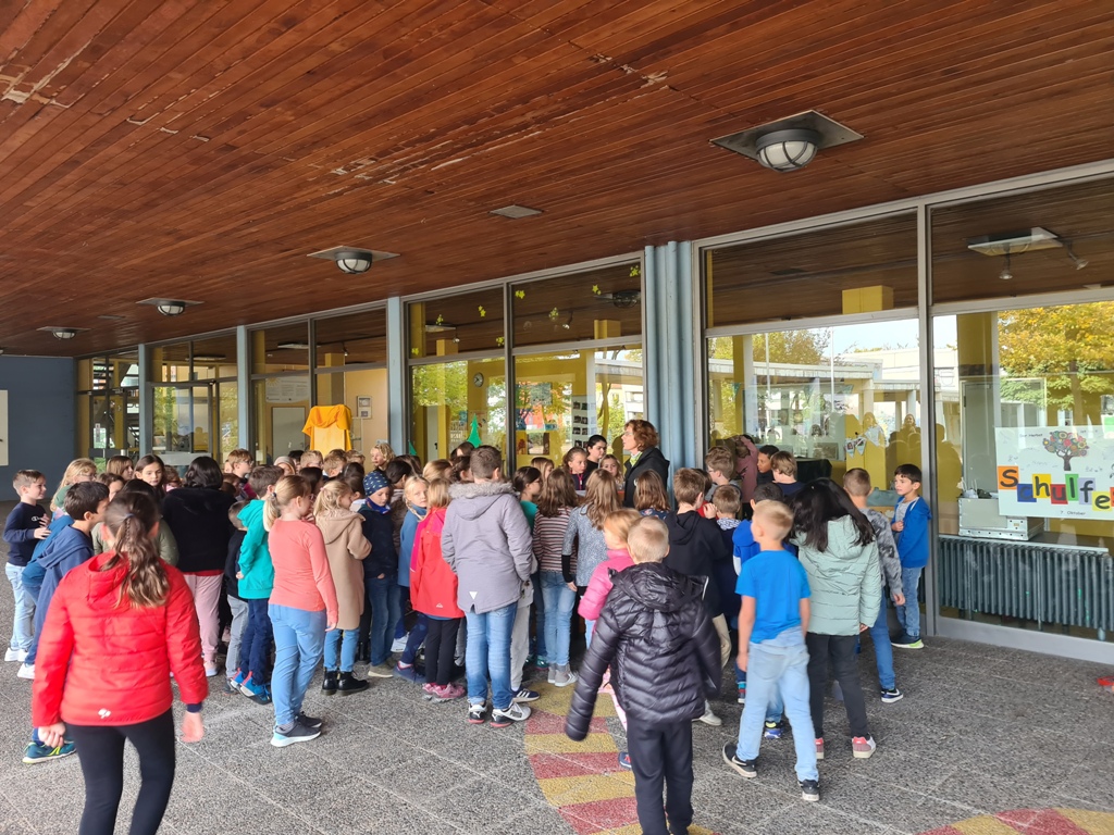 Abgerundet wurden die Projekttage mit einem tollen Schulfest bei sonnigen Temperaturen mit selbstgepressten Apfelsaft, vielen Bastelangeboten, einer Instrumentenstraße, Kastanienenzielwurf, Dosenwerfen und dem „Krokomobil“.