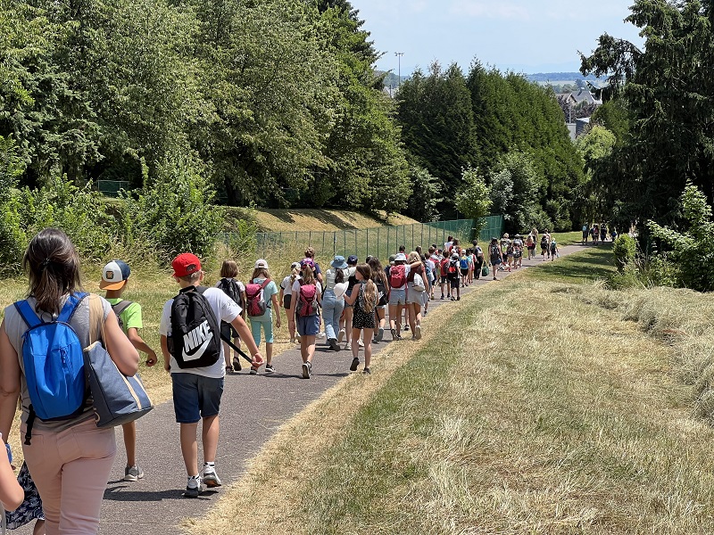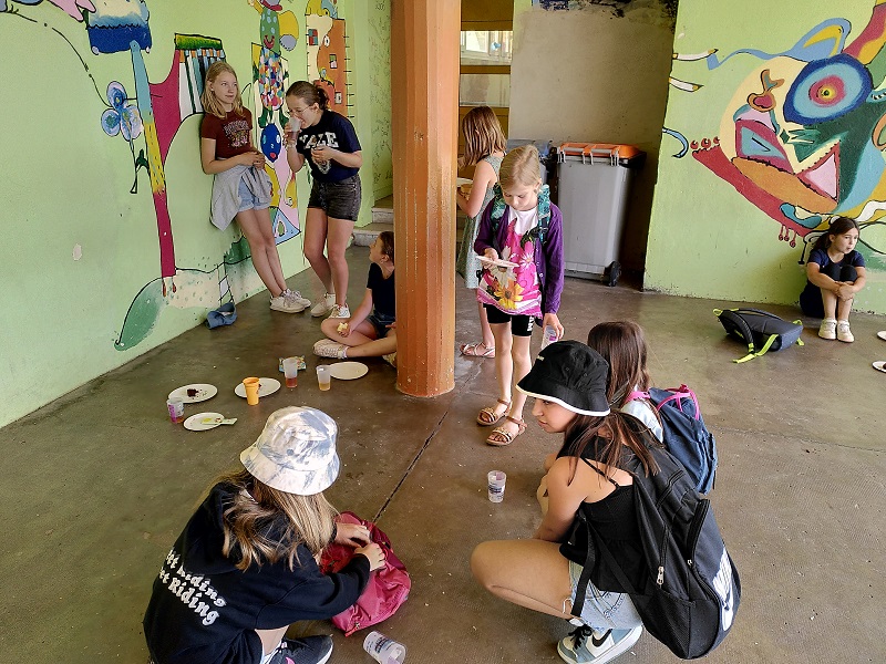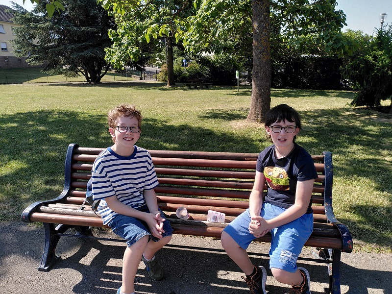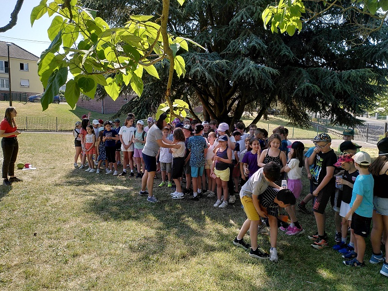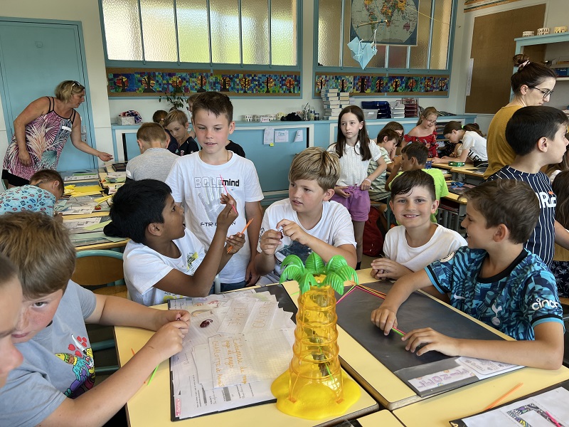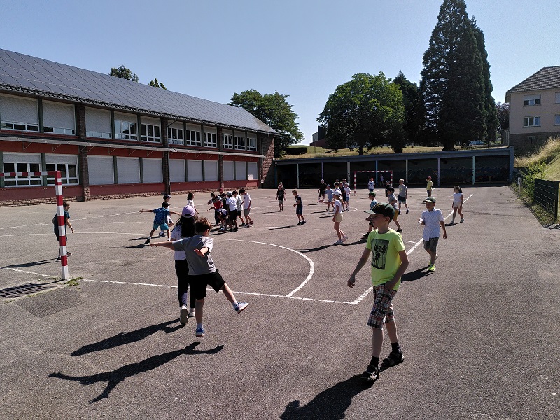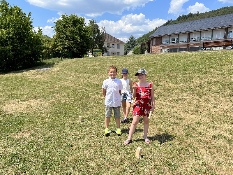 Am Donnerstag, den 15.06.2023 fuhren wir mit Frau Becker, Frau Freiesleben und zwei Studentinnen zu unserer Partnerschule in Niederbronn. Der Ausflug begann erst einmal mit einer zweistündigen lustigen Busfahrt. Als wir ankamen erwartete uns ein großes Buffet mit leckerem Kuchen und erfrischenden Getränken. Besonders der Schokokuchen und der Himbeereistee waren sehr beliebt! Anschließend wurden uns unsere Partner zugeteilt, die wir aus Briefen schon ein wenig kannten. Wir konnten miteinander spielen. Das klappte sehr gut, denn unsere Partner konnten schon sehr gut deutsch. Danach gingen wir in ihr Klassenzimmer und wir bastelten Origami und spielten Memory, Uno und Schach. Anschließend machten wir einen Ausflug auf einen Spielplatz. Dort entdeckten wir sogar zwei riesige Hirschkäfer! Zurück an der Schule konnten wir noch auf dem Pausenhof spielen und uns am Buffet stärken. Zum Abschluss sangen wir zusammen ein Lied und dann ging es leider schon wieder nach Hause. Das war ein toller Tag mit vielen Erlebnissen!