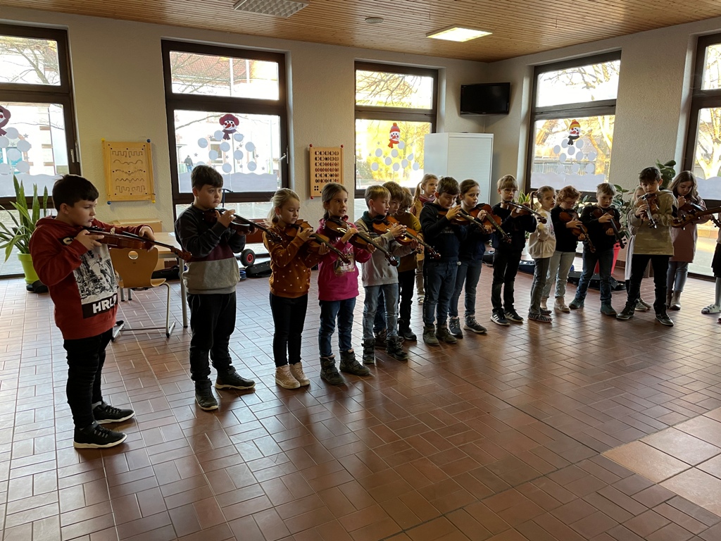 Noch vor den Winterferien durften die Zweitklässler am Standort Pestalozzi-Grundschule eine besondere Musikstunde erleben. Christina Hirsch und Lisa Metz waren zu Gast und hatten viele Geigen dabei. Nach genauerem Betrachten und Erkunden des Instrumentes wurden den Kindern interessante Details der Geige durch ein kurzes Quiz spielerisch nähergebracht. Schließlich durfte jeder eine Geige in die Hand nehmen und selbstständig ausprobieren. Es war eine gelungene Musikstunde. Vielleicht hat der ein oder andere Freude daran gefunden, das Instrument zu erlernen.