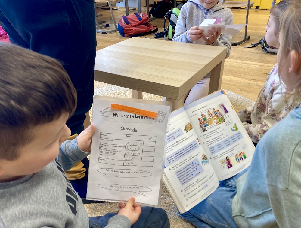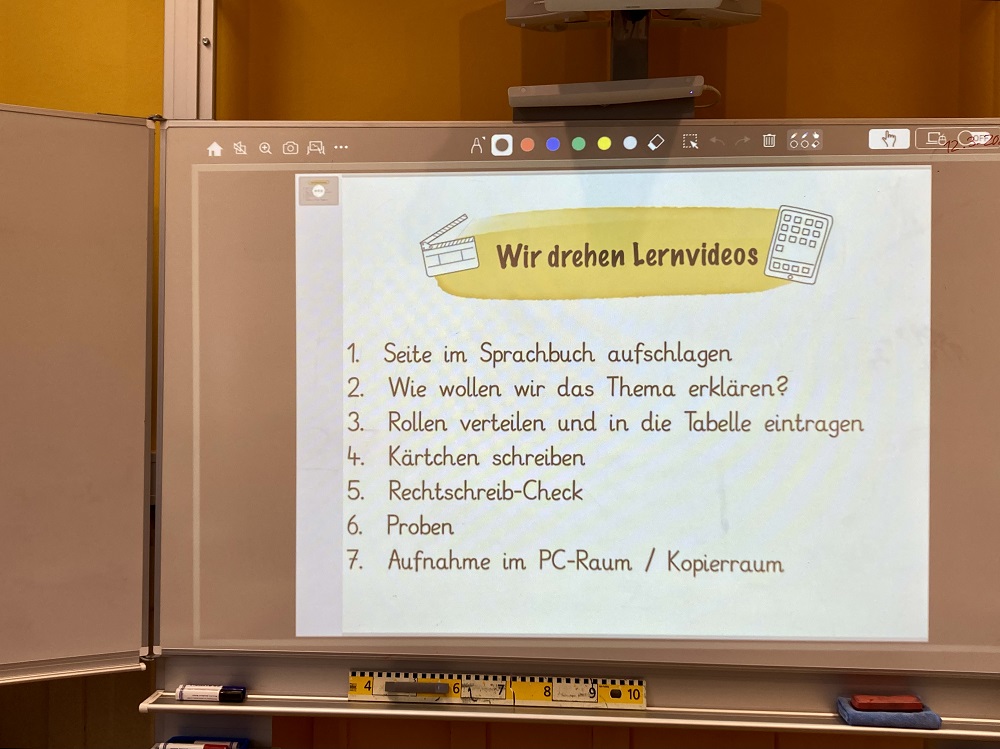 In der vergangenen Woche wurde aus dem Computerraum ein Filmstudio, denn die 3b hat im Deutschunterricht mit Frau Burger eigene Lernvideos aufgenommen.