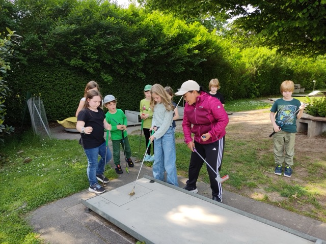 „Wann startet die Minigolf-AG?“, fragten vor den Osterferien schon einige Kinder voller Ungeduld. Am vergangenen Donnerstag war es dann endlich soweit. Knapp 40 Kinder trafen sich zum Schnuppertraining auf der Minigolf-Anlage in Mörsch. Ein herzliches Dankeschön an die Verantwortlichen Ursula Oberle, Reinhold Wiegelmann, Beatriz Grüßinger, der Deutschen Meisterin, sowie dem ganzen Verein Minigolf Wölfle, die den Platz und ihre Zeit kostenfrei den Kindern zur Verfügung stellen.