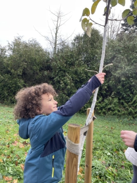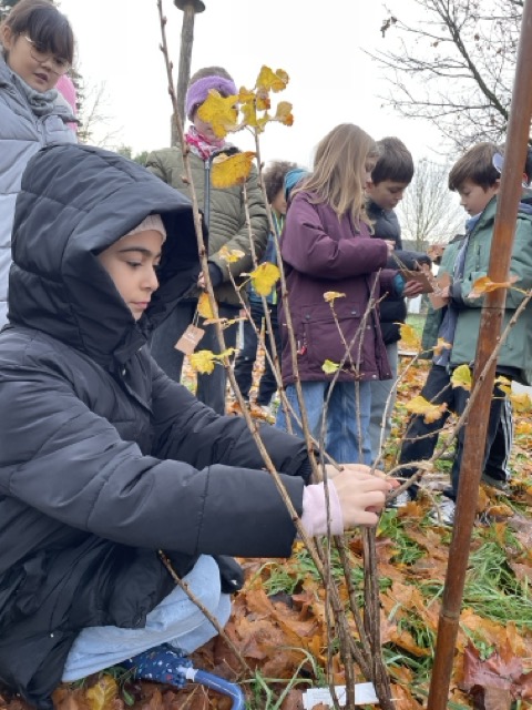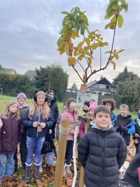 Nachdem die Klasse 4a Anfang des Jahres beim Pflanzen vieler Sträucher und Bäume geholfen hatte, war nun endlich der Zeitpunkt der Namensgebung gekommen.