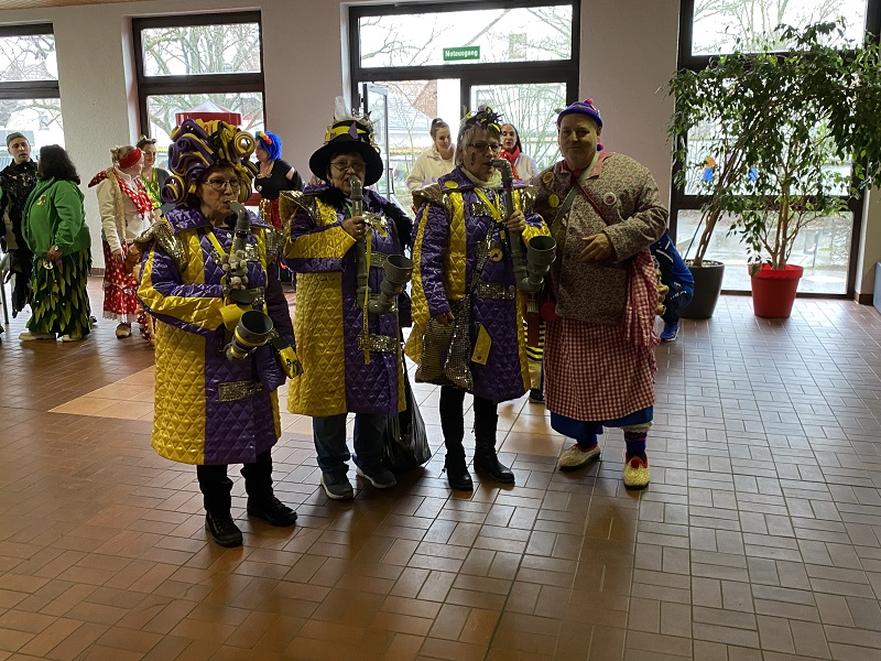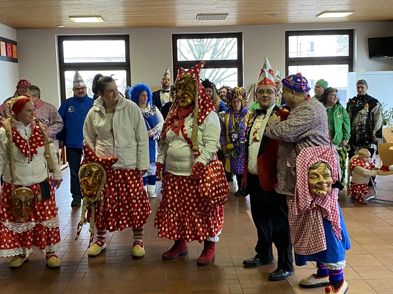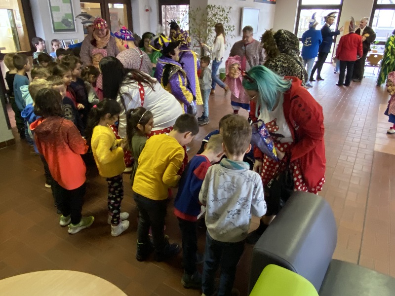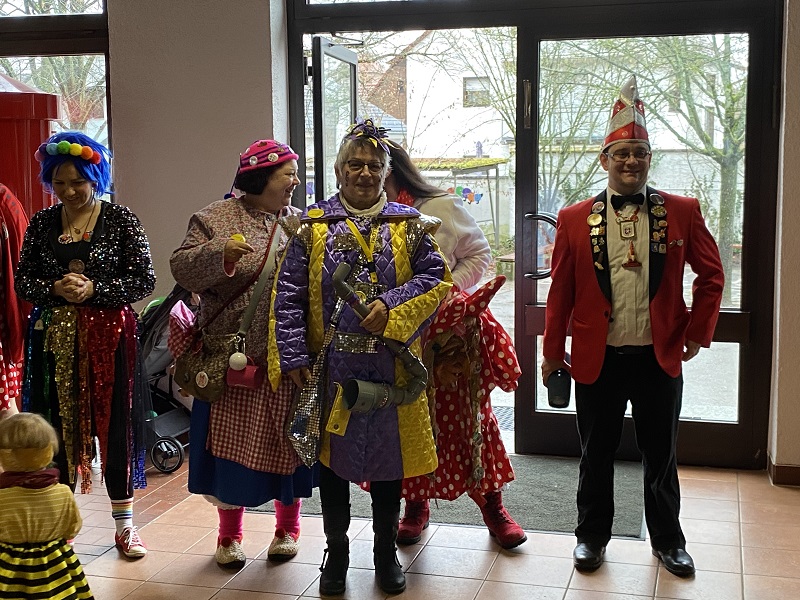 Sie bekamen nämlich Besuch von einer Abordnung der Rheinstettener Faschingsvereine. Alle stellten sich inklusive ihres „Schlachtrufes“ den Kindern vor. Groß war die Begeisterung als danach noch reichlich Süßigkeiten verteilt wurden.
