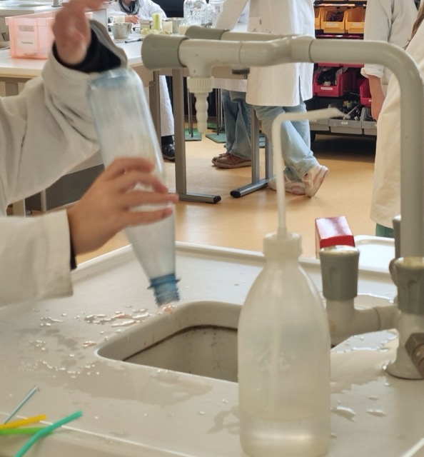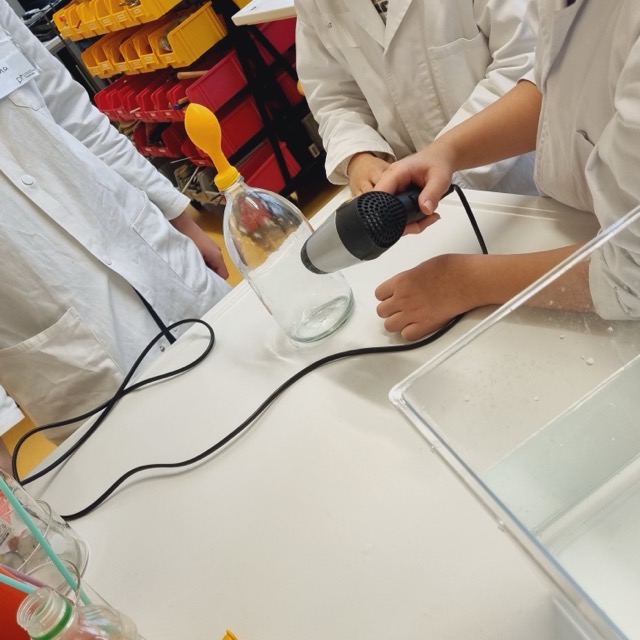 Kohlendioxid, an denen die Kinder selbst experimentieren durften. Mit Schutzbrillen und