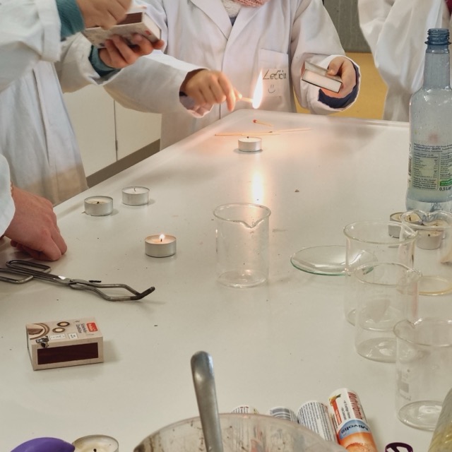 Einführung in die Welt der Chemie. Es gab Stationen zu den Bereichen Feuer, Wasser und