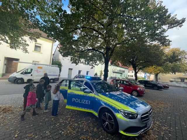 Auch das Thema sichtbare Kleidung, vor allem in der dunklen Jahreszeit, wurde ausführlich behandelt. Zum Abschluss gab es noch ein ganz besonderes Highlight: Die Kinder durften im Polizeiauto Platz nehmen und sogar einmal die Sirene einschalten.