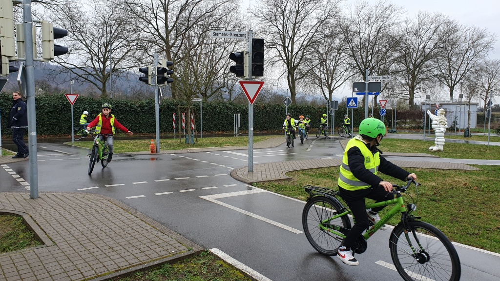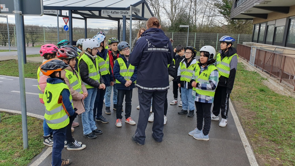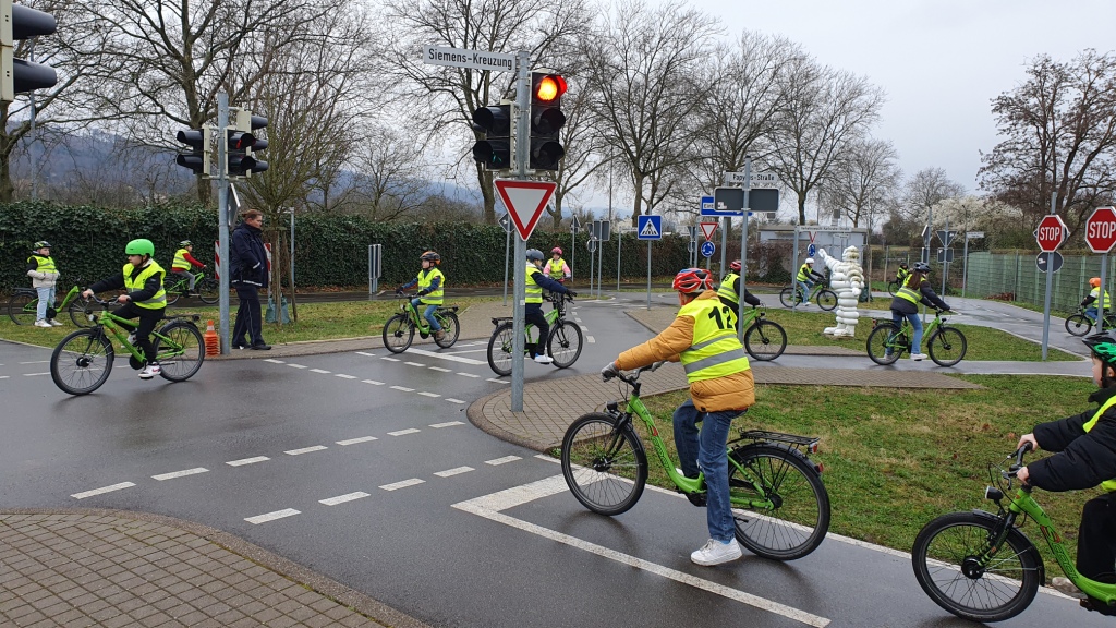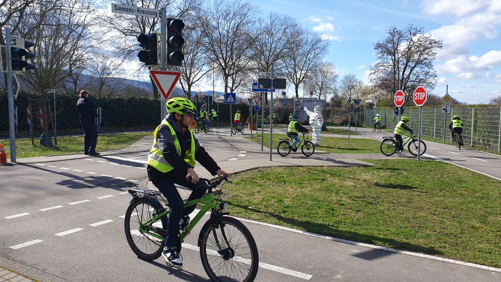 Diese und viele weitere Fragen wurden zunächst im Unterricht theoretisch erarbeitet, um dann auf dem Verkehrsübungsplatz in Ettlingen, unter fachkundiger Anleitung der zuständigen Polizeihauptmeisterin Frau Konjarik, in die Tat umgesetzt zu werden. Manch einer machte dabei die Erfahrung, dass das Radfahren gar nicht so einfach ist wie bisher angenommen.