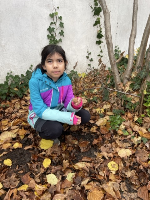 In der Aula sind wir zum Abschluss nach draußen gegangen, haben unseren Igel gesucht und dann die Temperatur des Wassers erneut gemessen. Dann haben wir verglichen und hatten eine Siegerin mit der höchsten Temperatur von 17°C. Ihr Igel war dicht eingepackt in einem Laubhaufen.