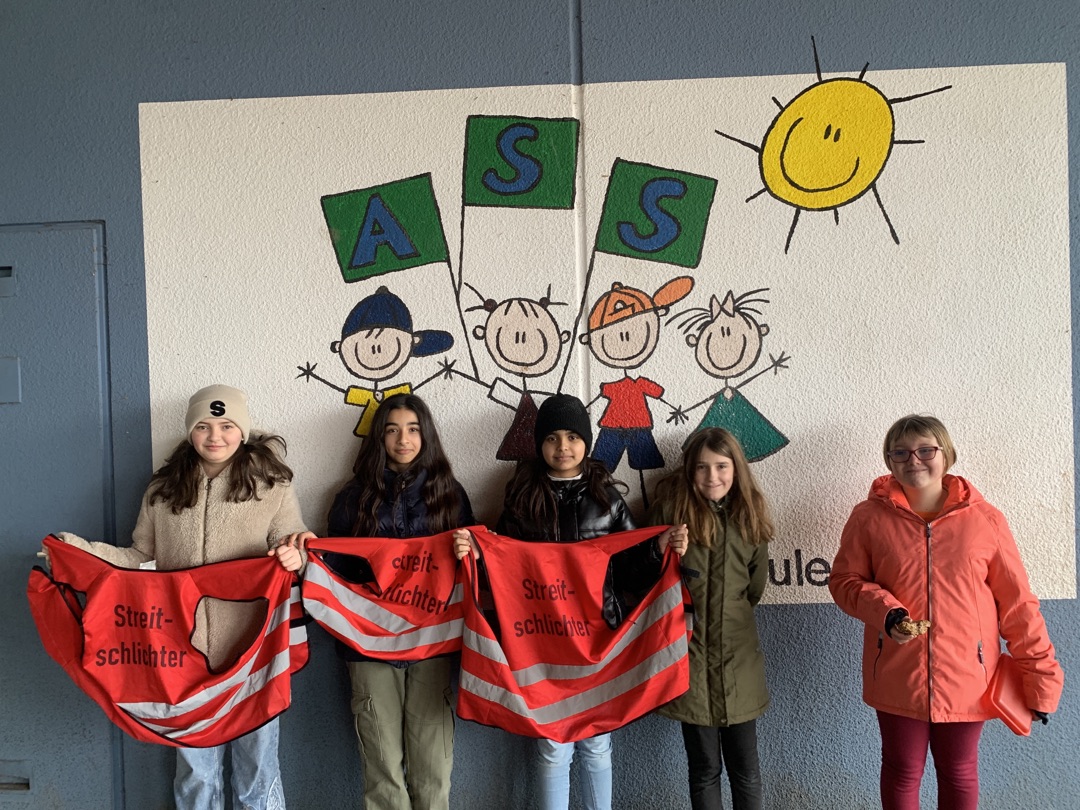 Nach der Streitschlichterausbildung, welche schon im letzten Schuljahr gestartet ist, wurden die neuen Streitschlichter nach den Herbstferien in ihren Dienst an den Schulen eingeführt und vorgestellt. Gemeinsam mit der Schulsozialarbeiterin haben sie sich mit dem Thema Streit und Streitschlichtung auseinander gesetzt und sich außerhalb des Unterrichts viel über Streitphasen, Konfliktlösungen und das Durchführen einer Schlichtung gelernt.