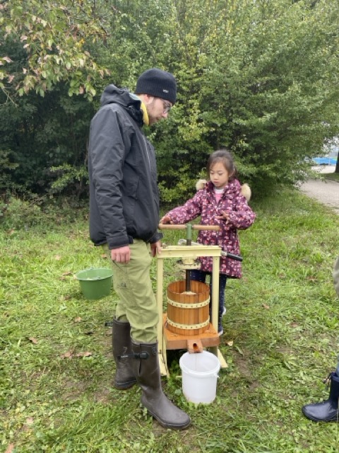 Äpfel ernten, säubern, pressen und gleich probieren.