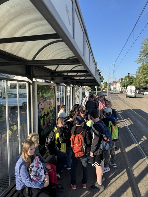 Das wurden die Schülerinnen und Schüler der 4c und 4d während der Führung in der Synagoge in Karlsruhe gefragt. Eine Synagoge ist nämlich im engeren Sinne nicht immer eine Synagoge, denn nur wenn vier Dinge erfüllt sind, trifft der Name darauf zu. Der Raum muss geschützt und gesegnet sein, also eine Mesusa im Türrahmen haben, er muss nach Jerusalem ausgerichtet sein, die Thora muss im Raum einen Platz haben und die Gemeinde muss sich zum Gebet versammeln.