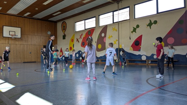 Mit  abwechslungsreichen Spielen lernten die Kinder die verschiedenen Schlagtechniken kennen und durften zum Abschluss auch selbst ein paar erste Schläge austesten. Mit so viel Spaß verflog die Sportstunde im Nu!