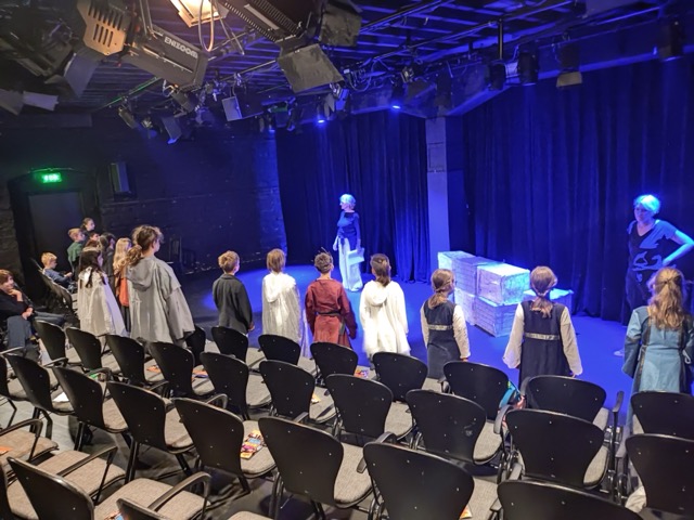 Das Ensemble wurde sicher und souverän von einem Erzähler durch das Stück geführt. Die Umbauten meisterten die Kinder problem- und geräuschlos.