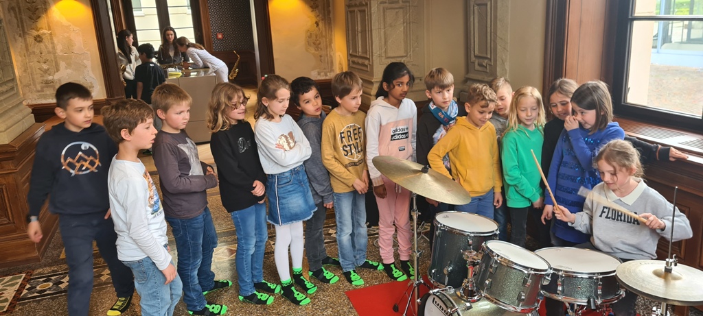 Wie funktioniert unsere Stimme? Welche Musik drückt welche Stimmung aus? Selber einen super Beat zusammenstellen, gemeinsam auf Cachons musizieren, Geige, Harfe, Schlagzeug Orgel und viele andere Instrumente ausprobieren… das alles und noch einiges mehr ermöglichte den Drittklässlern der PGS der Besuch im Toccarion in Baden-Baden. Schon der Weg dort hin – im Musikmobil – war spannend, denn Anastasiia und Danilo (Studierende der Musikhochschule Karlsruhe) stimmten die Kinder rhythmisch und mit musikalischen Darbietungen auf diesen ganz besonderen Tag im Zeichen der Musik ein. Im Toccarion durfte dann viel selber ausprobiert werden. Es war ein wirklich toller Vormittag.