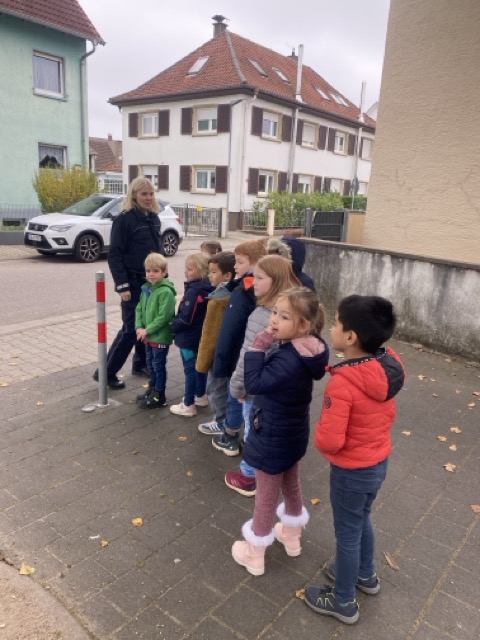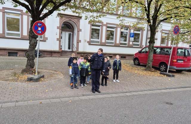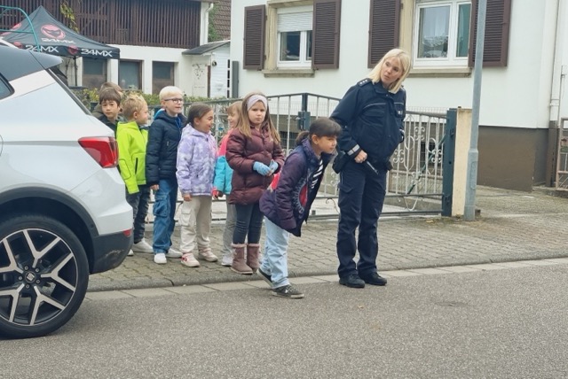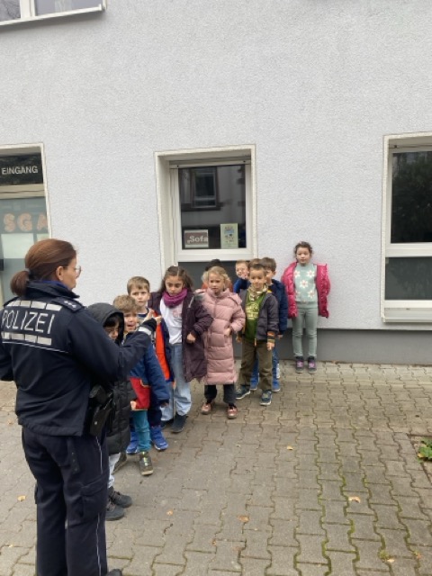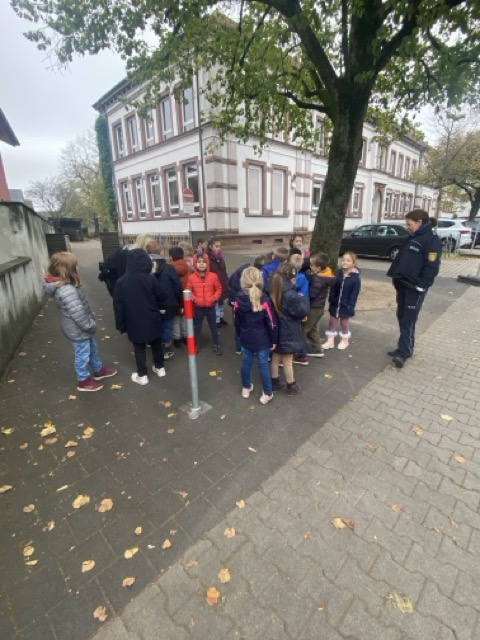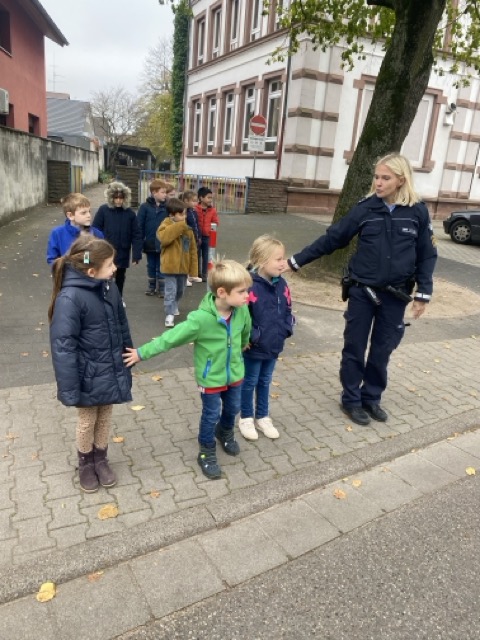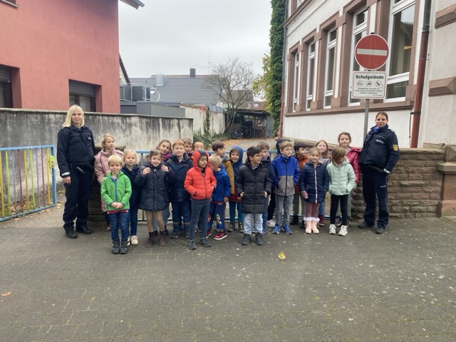 Da diese Situation – gerade auch auf dem Schulweg und um unsere Schule herum - für Kinder täglich eine Herausforderung ist, bekamen die Erstklässler am 7. November dazu eine gezielte Schulung durch die Polizeibeamtinnen Frau Borrmann und Frau Walter.