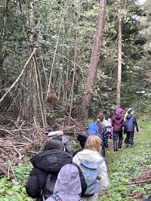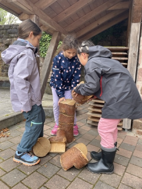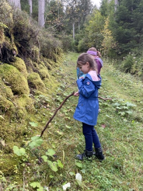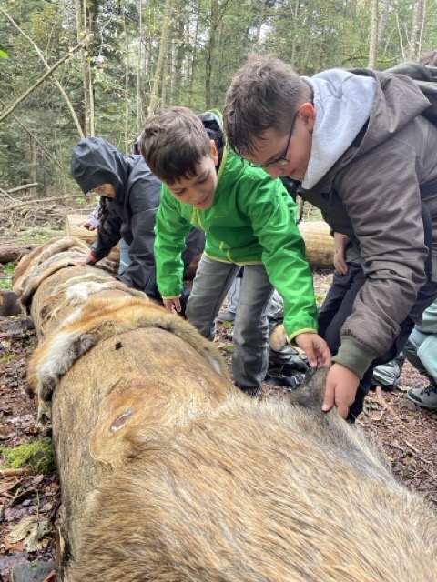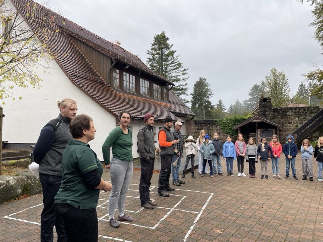 Um 14:00 Uhr begann dann für die Klasse 4b die Waldführung, bei der die Kinder die Pflanzen- und Tierwelt um die Burg herum kennenlernen konnten.