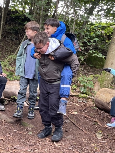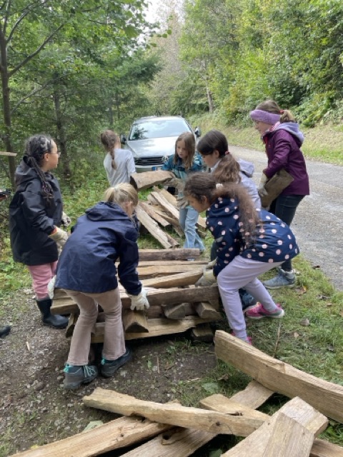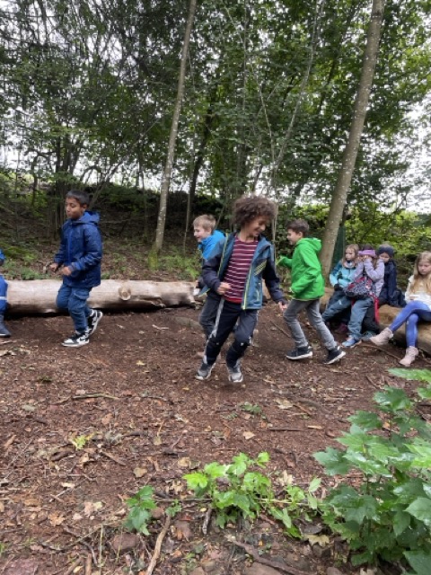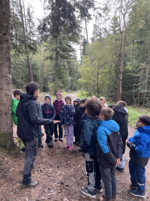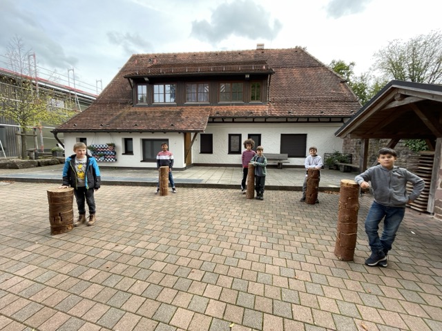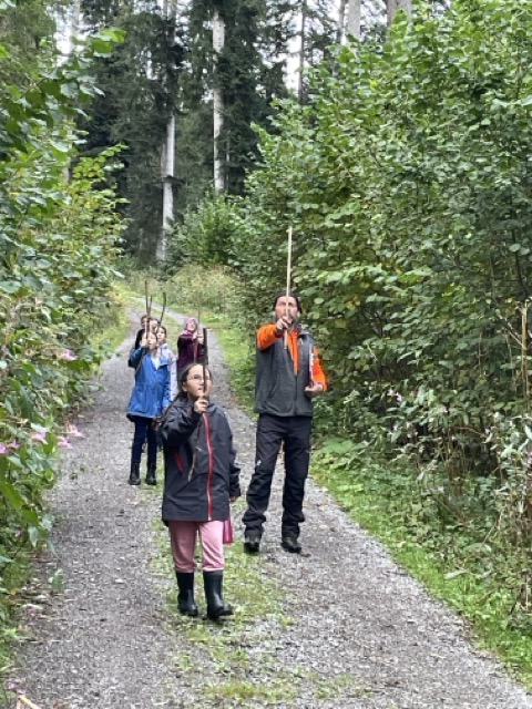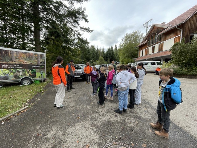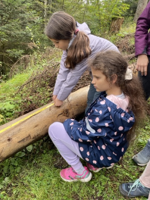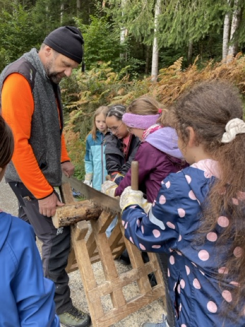 Die Kinder der Klasse 4a wurden am Vormittag durch den Wald geführt und nahmen dann am Nachmittag an der Holzfäller-Olympiade teil.