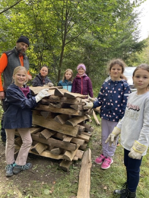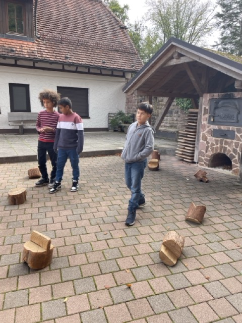 Am Morgen des 1. Oktober wurden die Kinder, die noch nicht wach waren, gegen 7:00 Uhr geweckt und alle trafen sich zum gemeinsamen Frühstück um 7:30 Uhr im Speisesaal. Um 9:00 Uhr wurden die Kinder der Klasse 4b in vier Gruppen aufgeteilt, um unter der Anleitung der Betreuer und der Lehrer/innen die Aufgaben der Holzfäller-Olympiade zu lösen.