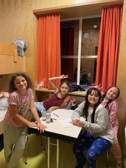 Die Kinder erhielten die Bettwäsche, richteten sich ein und trafen sich um 12:00 Uhr im Speisesaal, um dort ihr Mittagessen zu genießen. Um 13:00 Uhr fand die Lehrerbesprechung statt, bei der der Ablauf des Aufenthaltes grob skizziert wurde.